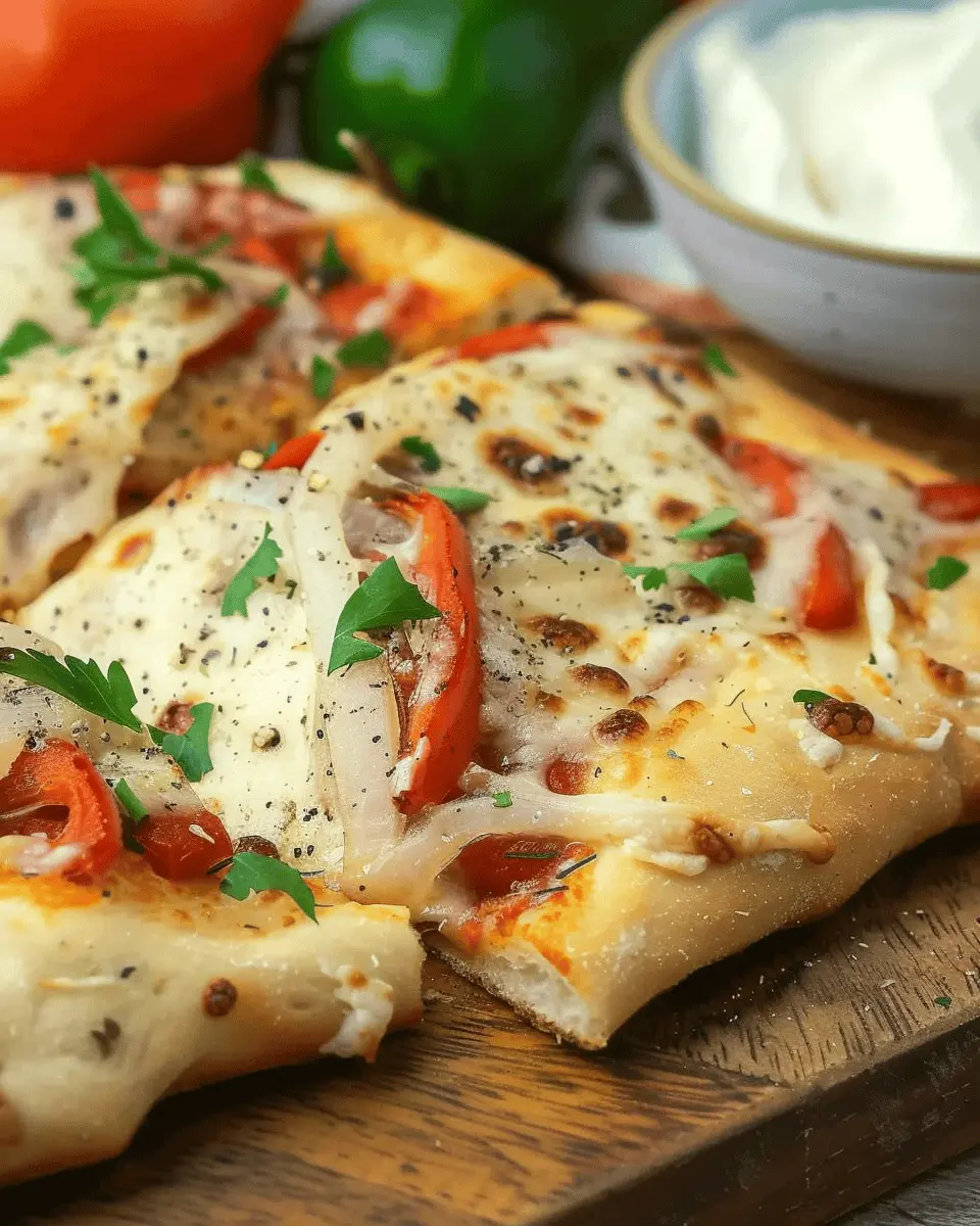 If you’re a fan of heat, this spicy jalapeño version is sure to elevate your flatbread. Simply add finely chopped jalapeños to your sautéed peppers and onions before spreading the mixture onto the dough. The result? A zesty twist that tantalizes the palate. Consider garnishing with a sprinkle of crushed red pepper flakes for that extra kick. For an even bolder flavor, try mixing in a dollop of spicy hummus as a base before layering on your veggies.