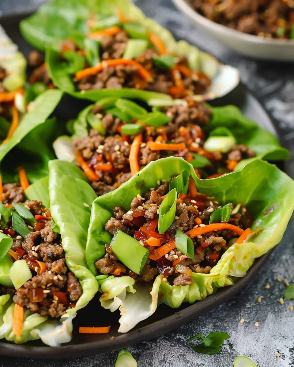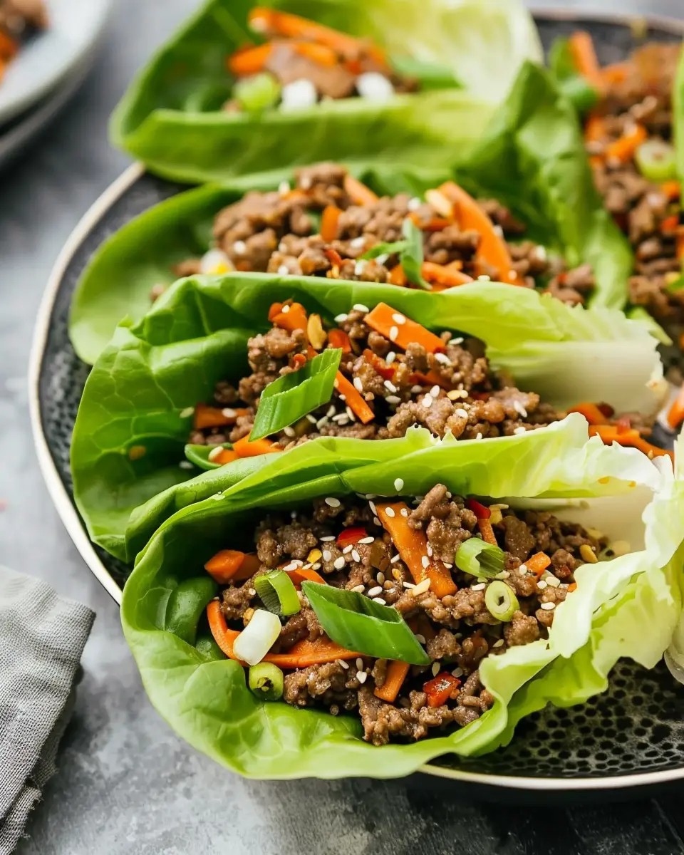 PrintAsian-Style Ground Beef Lettuce Wraps: Easy and Flavorful Delight