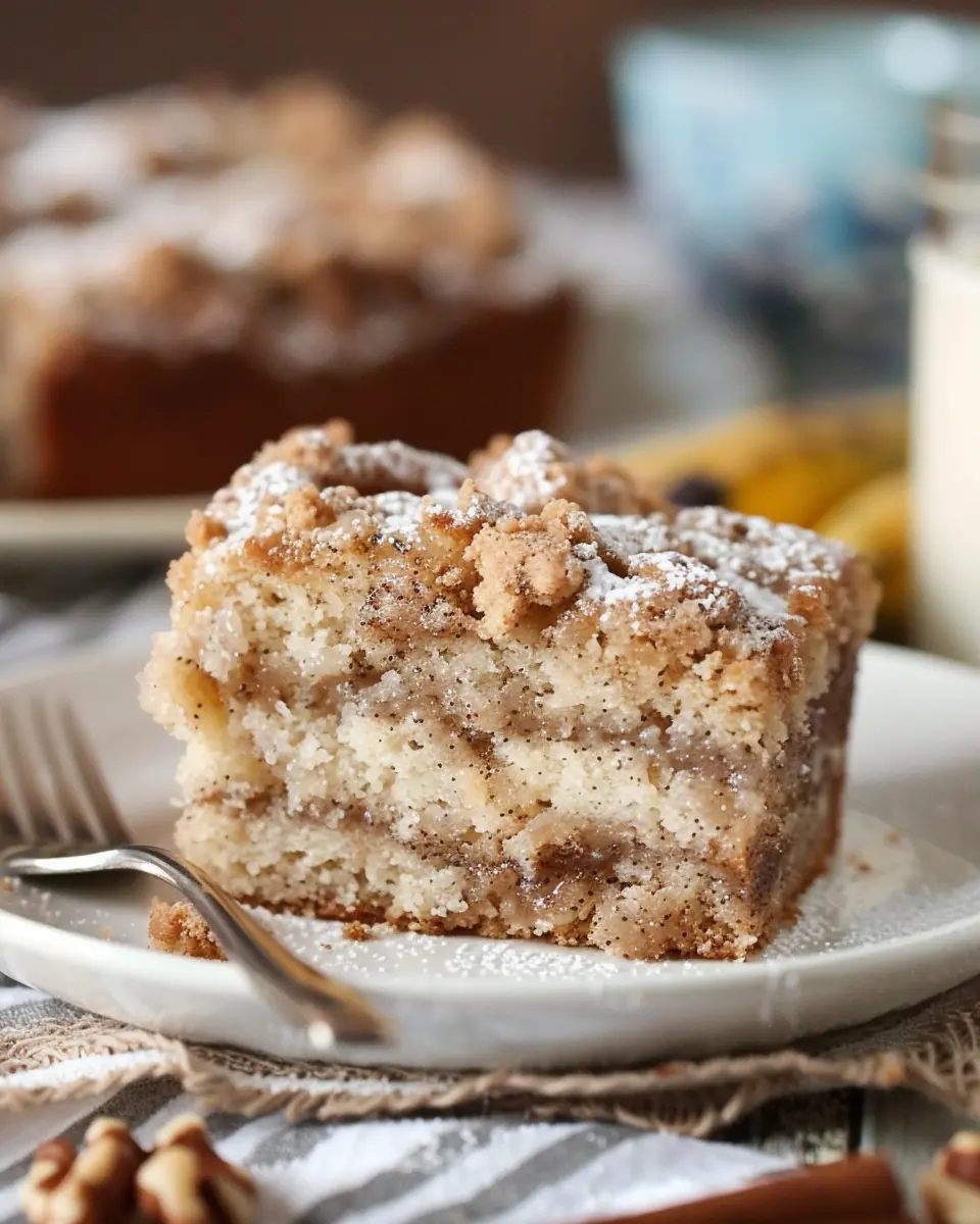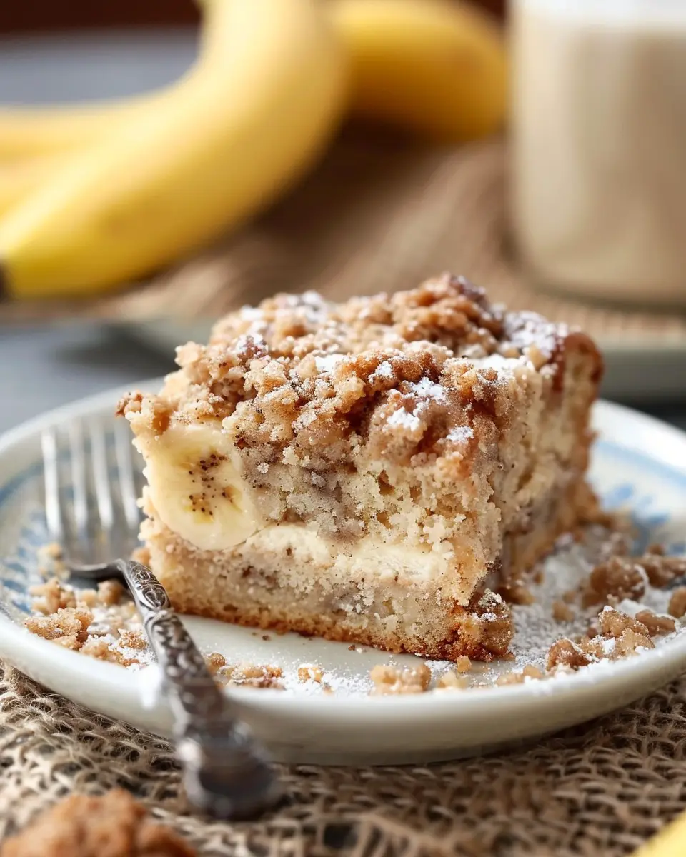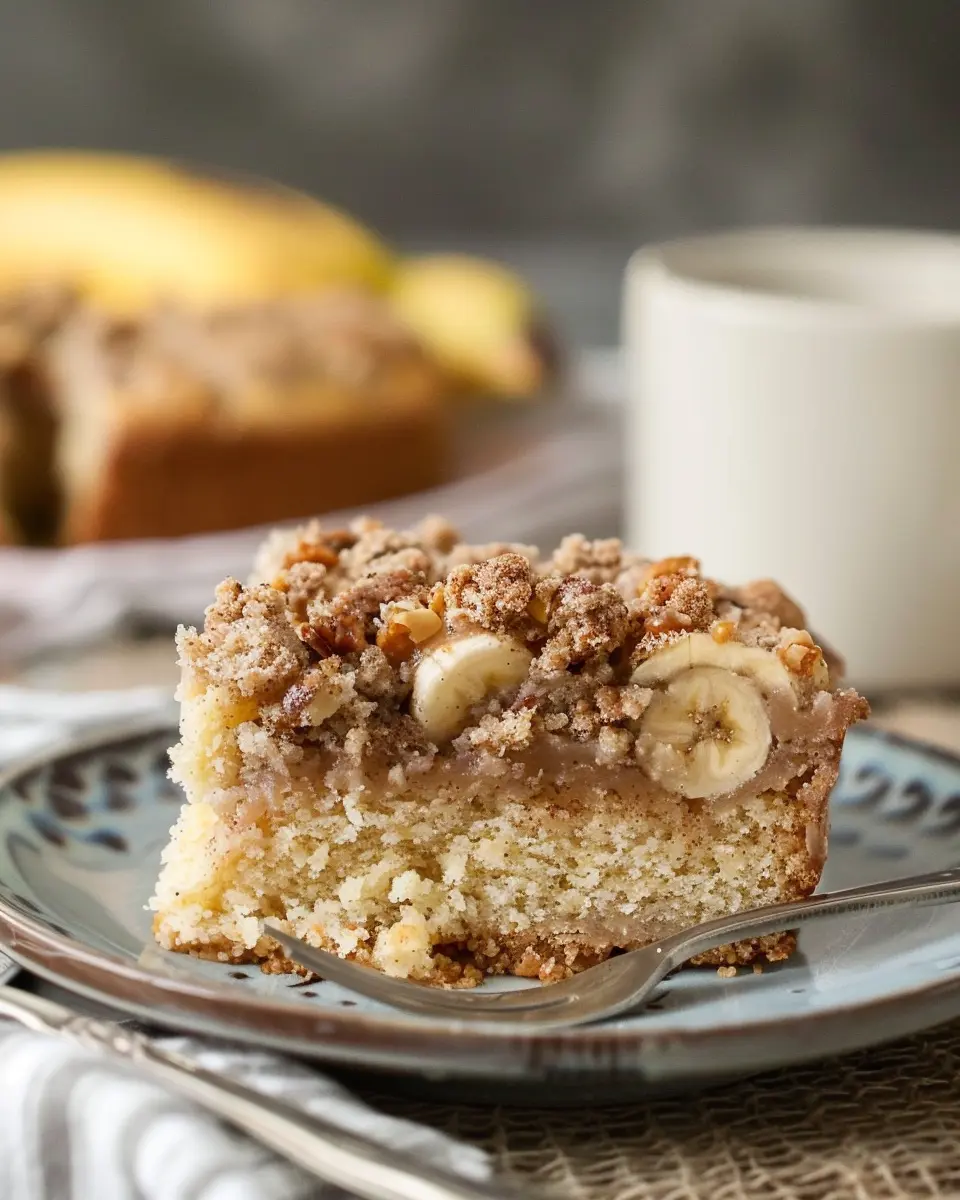Delight in the moist and flavorful Banana Crumb Coffee Cake topped with a delicious streusel layer, perfect for breakfast or dessert.