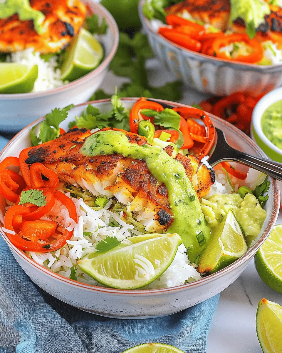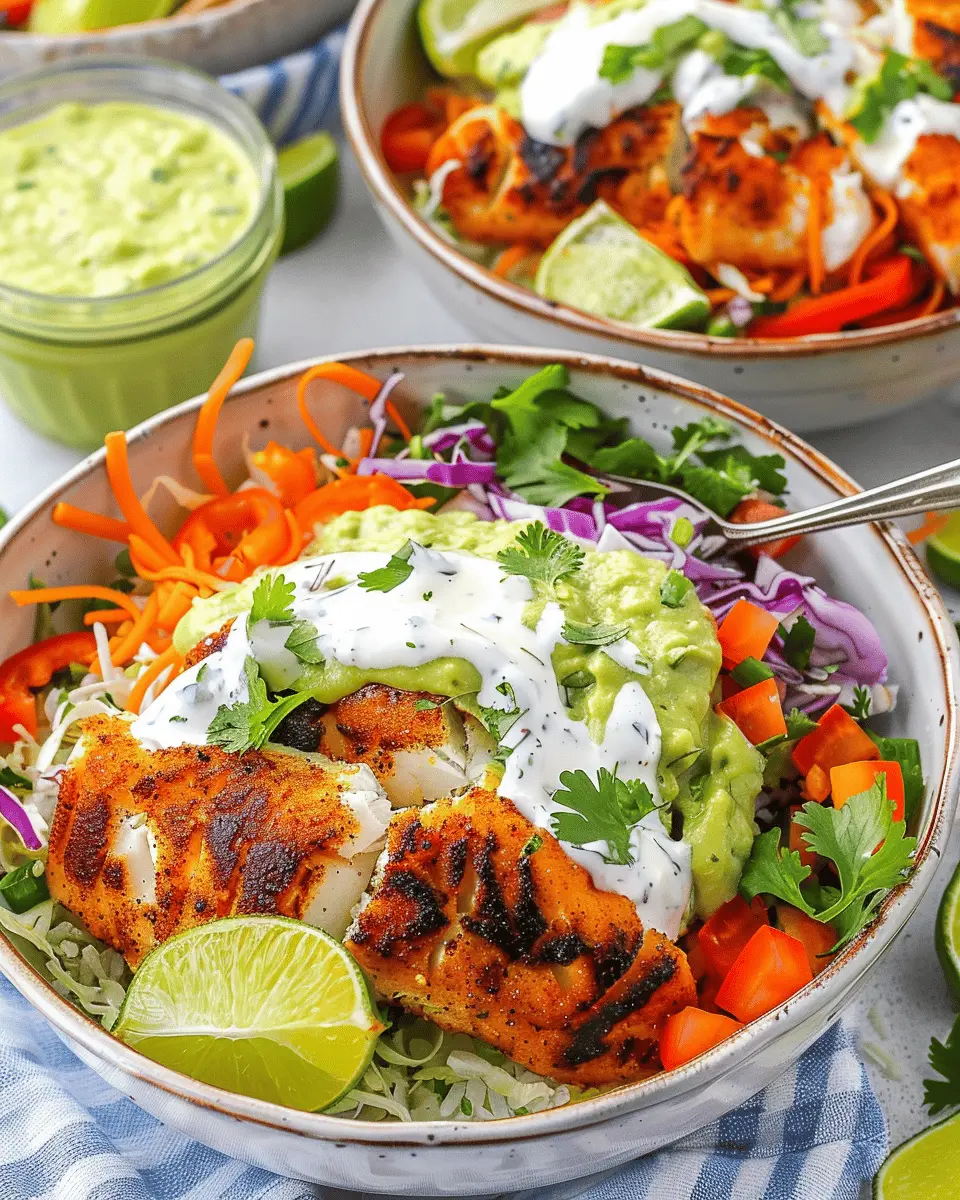 In summary, blackened fish taco bowls bring a perfect balance of flavors and textures to your meal. The robust seasoning of the blackened fish pairs wonderfully with the zesty cilantro lime sauce, creating a delightful explosion of taste in every bite. Plus, they are packed with nutrients and can be customized with your favorite toppings like avocado and fresh vegetables.