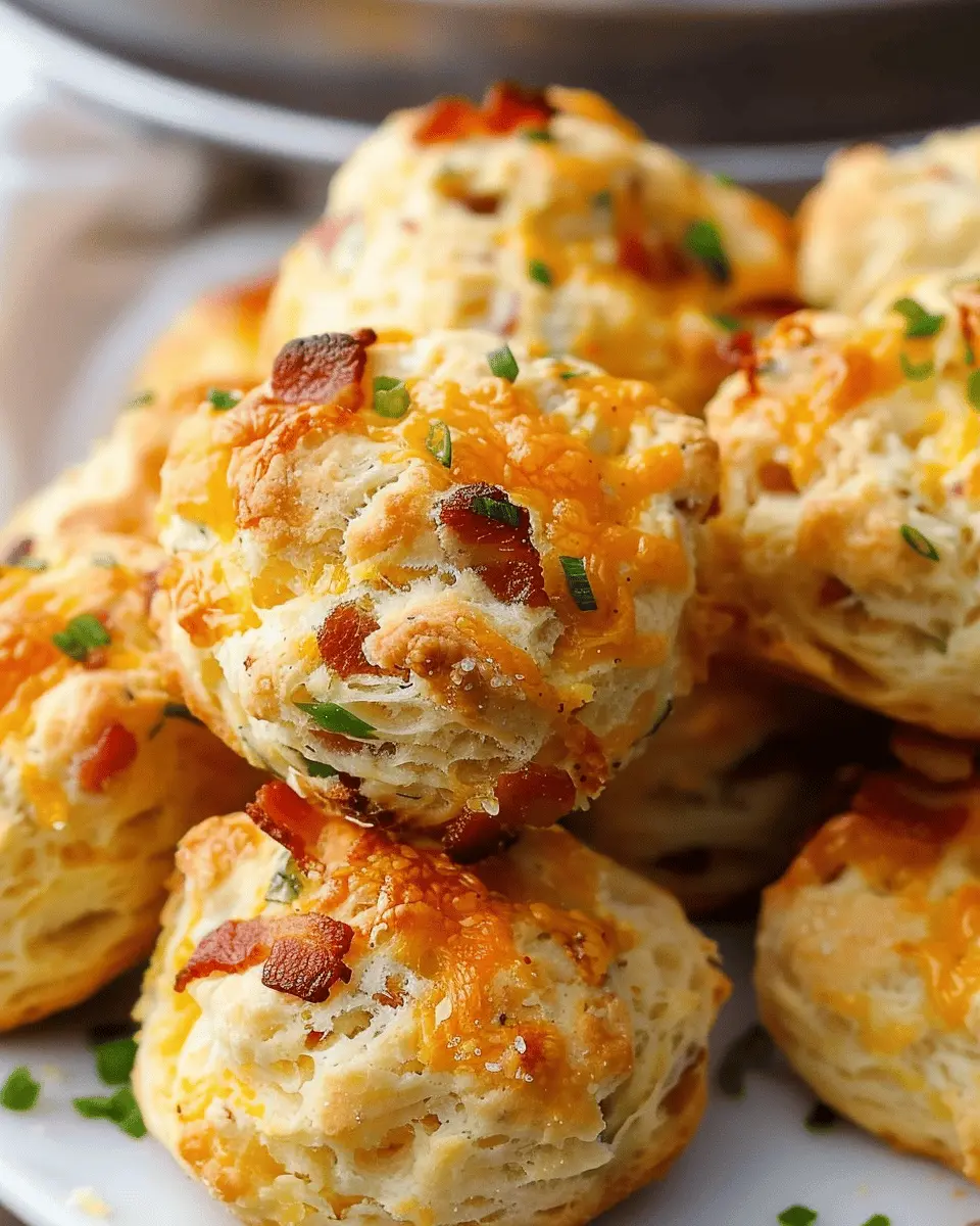 A delicious appetizer featuring cheddar and bacon, these biscuit bites are perfect for sharing.