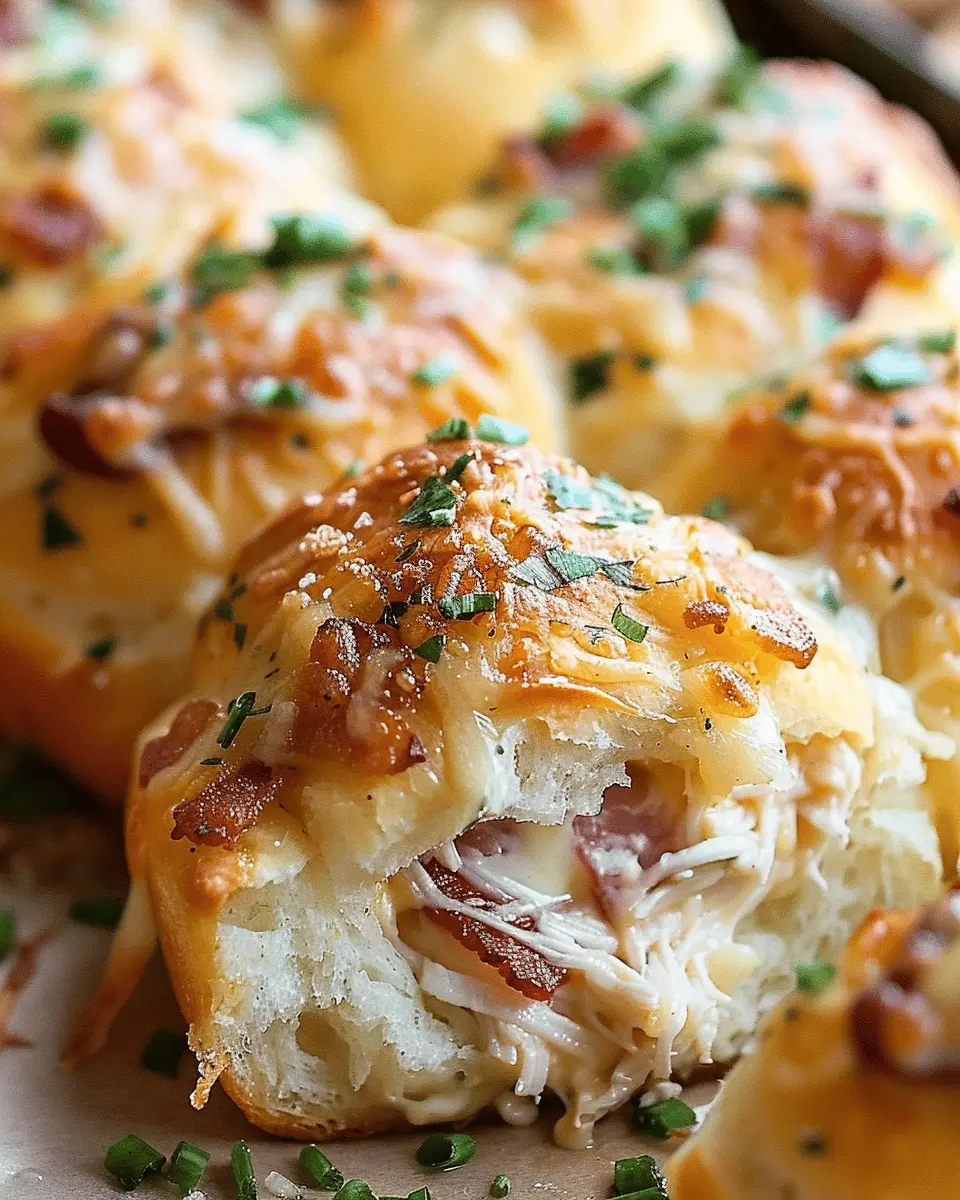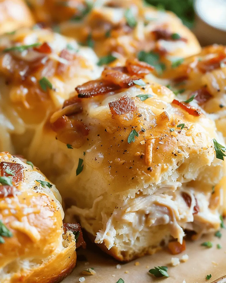 Indulge in these cheesy chicken bacon ranch pull apart rolls, perfect for any occasion.