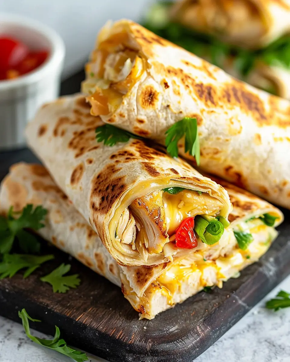 What makes these wraps stand out? For starters, the marriage of tender chicken, infused with the rich taste of garlic, and the delectable gooeyness of cheese is simply irresistible. Plus, you can customize them to your liking! Whether you’re a fan of extra veggies or want to add your favorite sauces, the possibilities are endless.