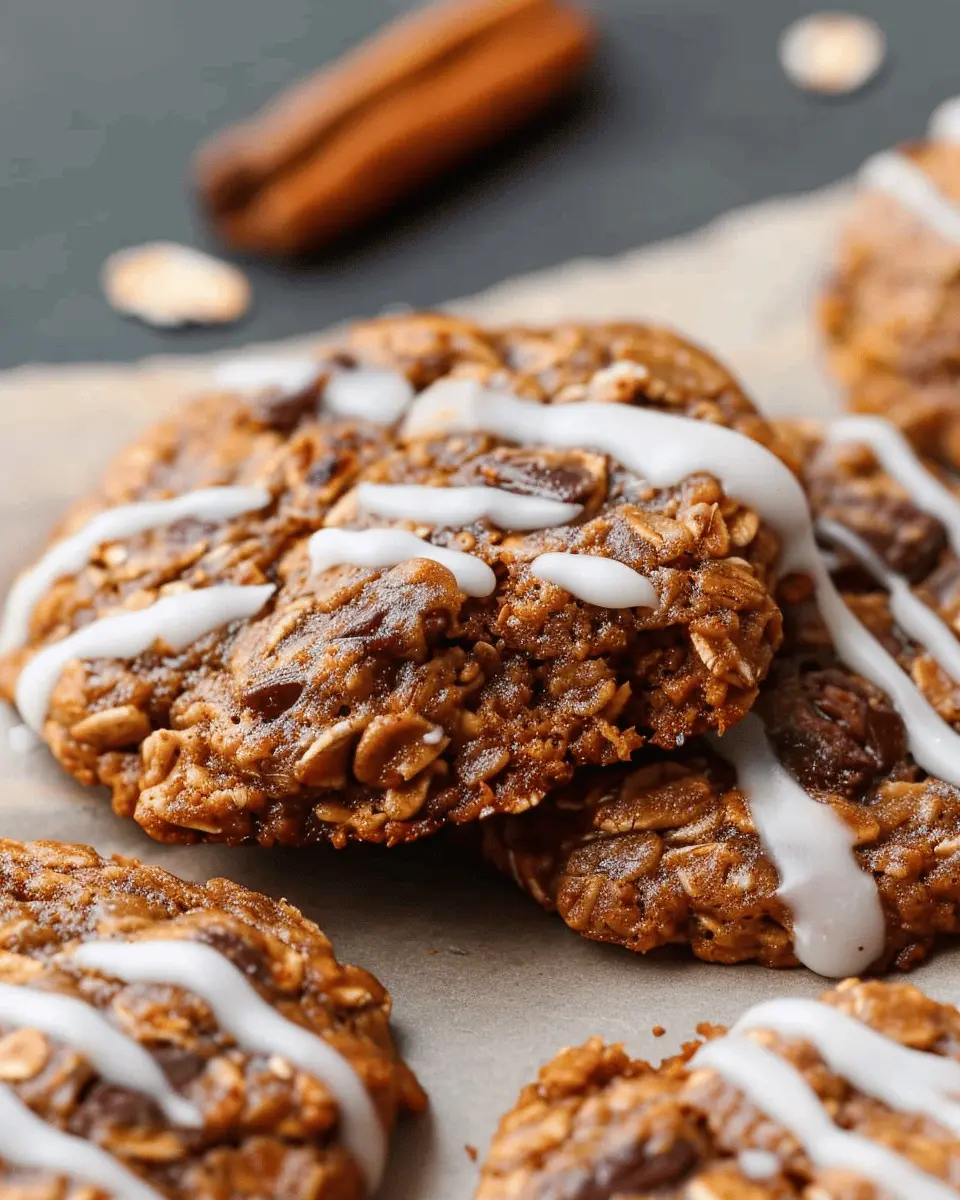 Once your cookies are completely cool, it’s time to have some fun! Drizzle the cream cheese glaze over your chewy pumpkin oatmeal cookies using a spoon or a piping bag for a professional touch.