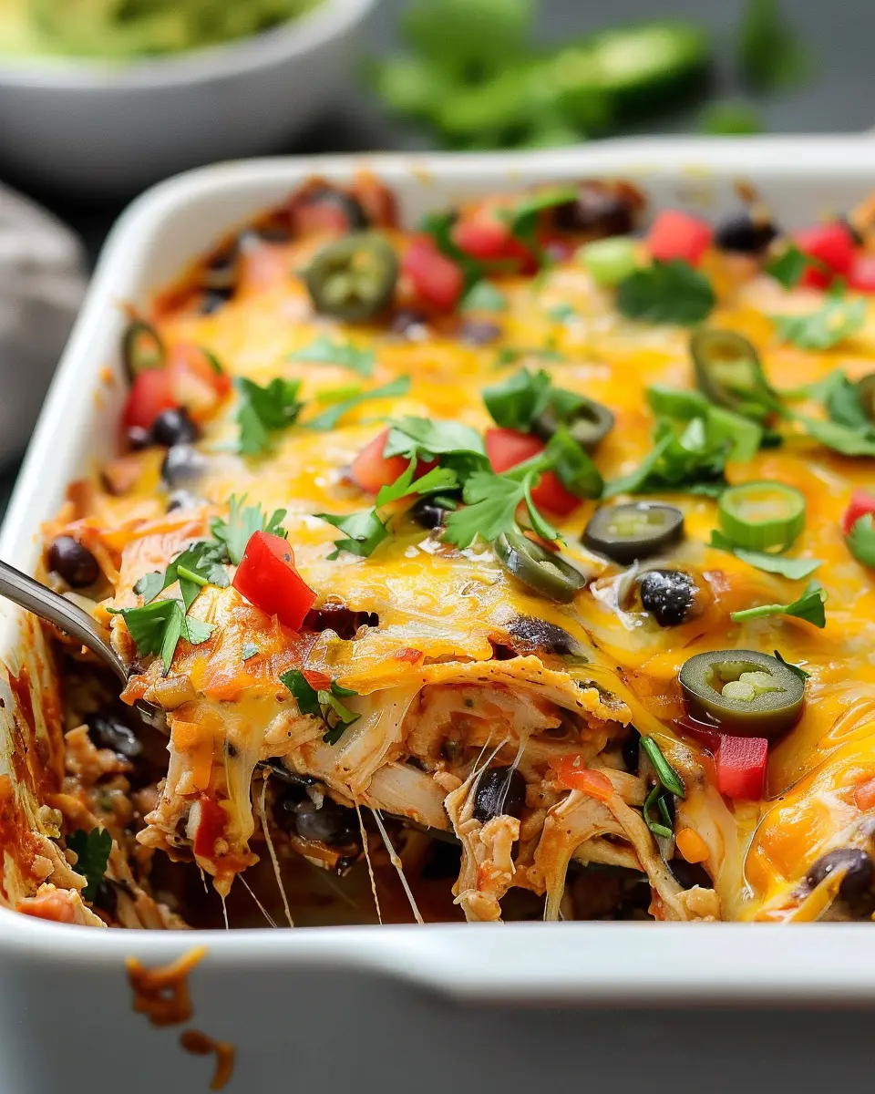 A delicious and comforting Chicken Burrito Casserole that’s perfect for family dinners.