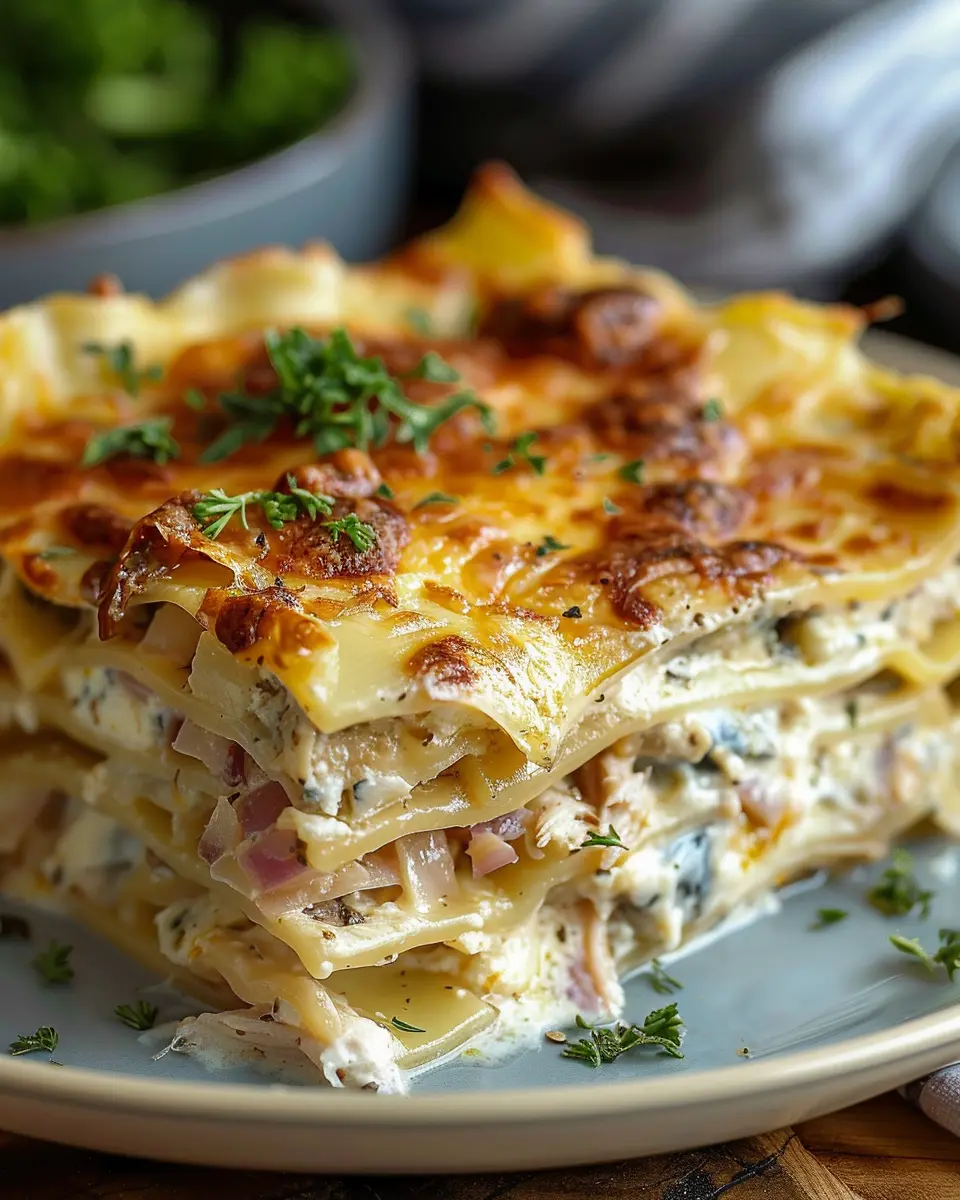 A decadent twist on a classic dish, this Chicken Cordon Bleu Lasagna combines flavors of chicken, ham, and creamy cheese in a delightful layered pasta.