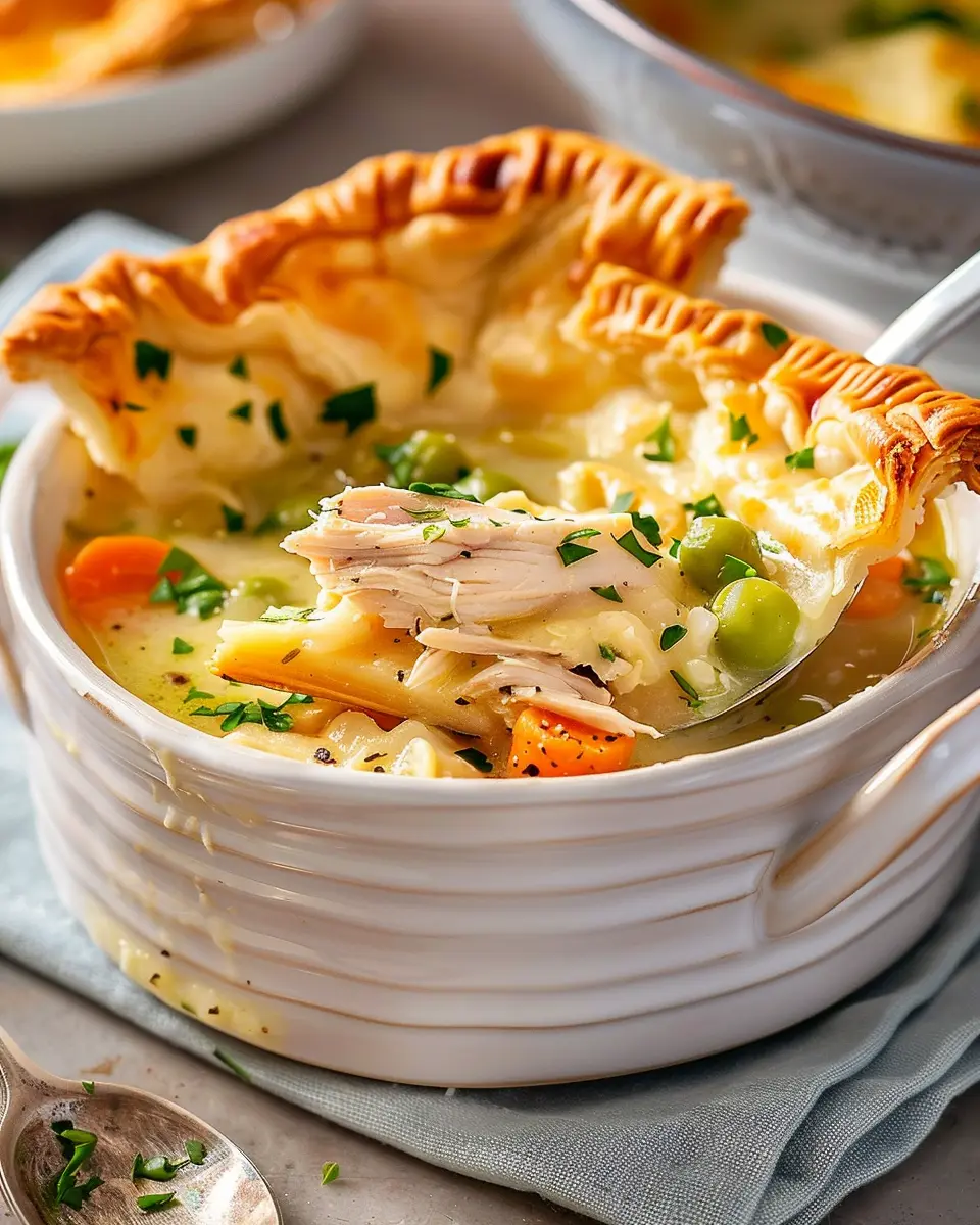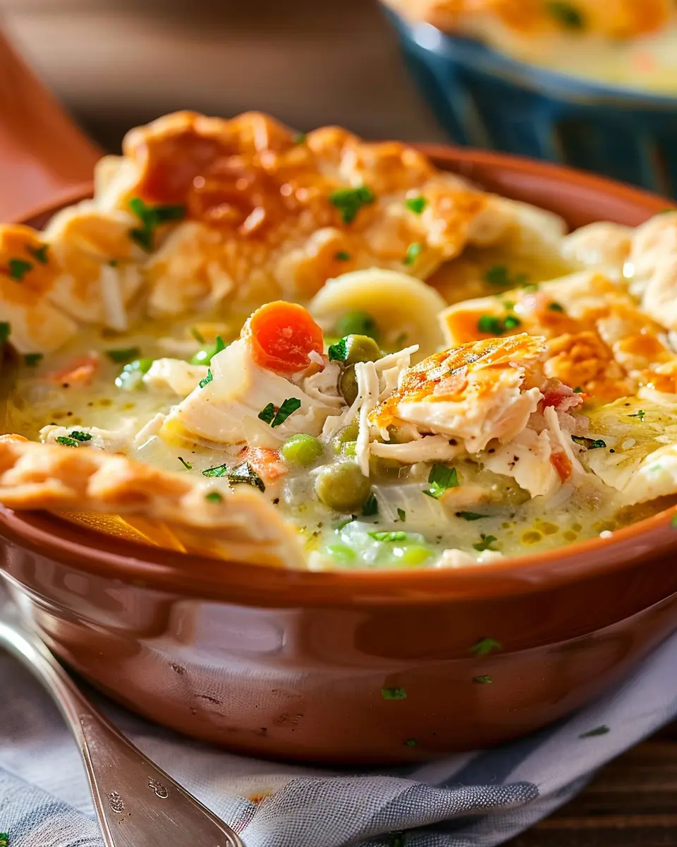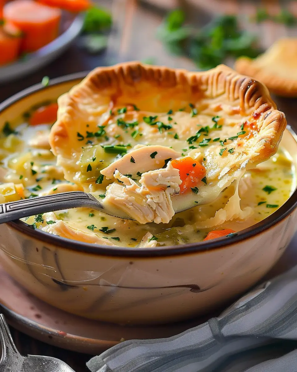 A warm and delicious Chicken Pot Pie Soup that captures all the comforting flavors of the classic dish.