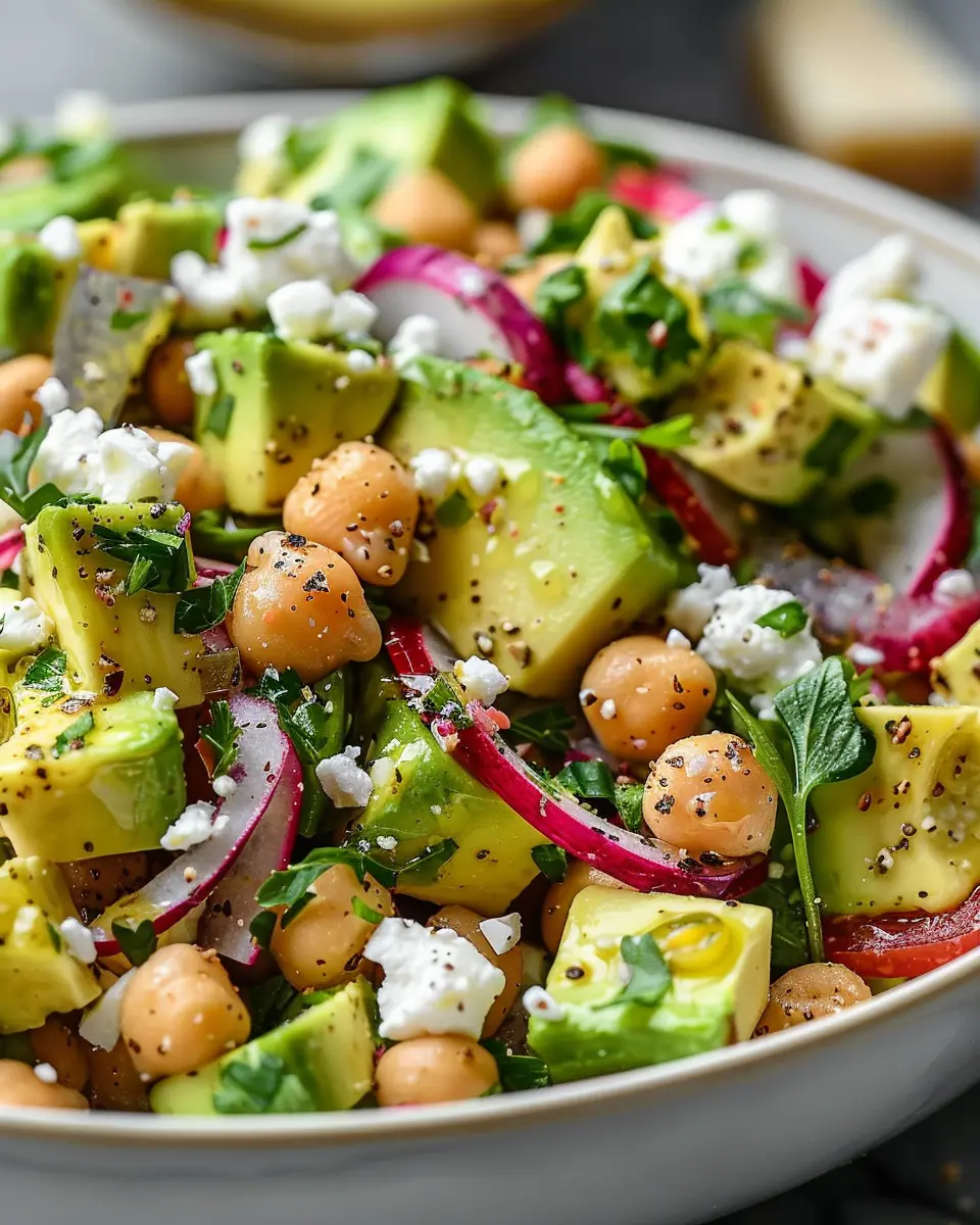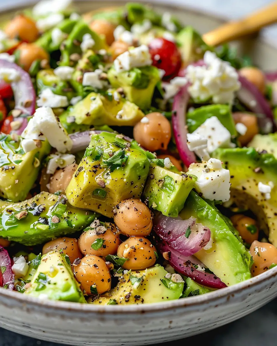 Wrapping up, the chickpea feta avocado salad offers a delightful blend of flavors and textures that are perfect for any occasion. Whether you’re meal prepping for the week or looking to impress friends at a casual gathering, this salad is your go-to dish. With protein-packed chickpeas, creamy avocado, and the tangy goodness of feta cheese, it turns simple ingredients into a gourmet experience. For an added crunch, consider topping it with seeds or nuts. Don’t forget to check out other nutritious recipes here to inspire your healthy eating journey! The combination of flavors in this salad is bound to keep your taste buds happy and satisfied!