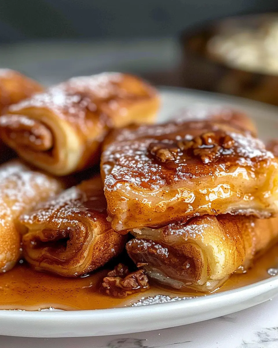 Craving chocolate? Indulge with chocolate-filled roll-ups! You can use chocolate hazelnut spread or even small chocolate chips. Spread your chosen chocolate filling on the cinnamon roll dough, roll it up, and then dip it in the egg mixture before frying. The chocolate will melt slightly, giving you a gooey, decadent center. These are perfect for those special brunches or surprise Sunday treats!