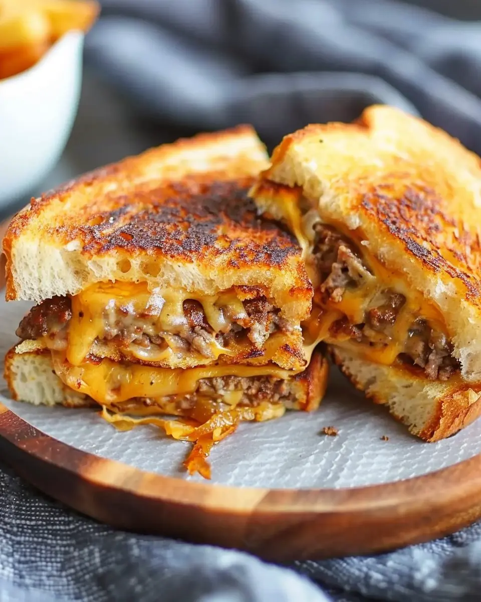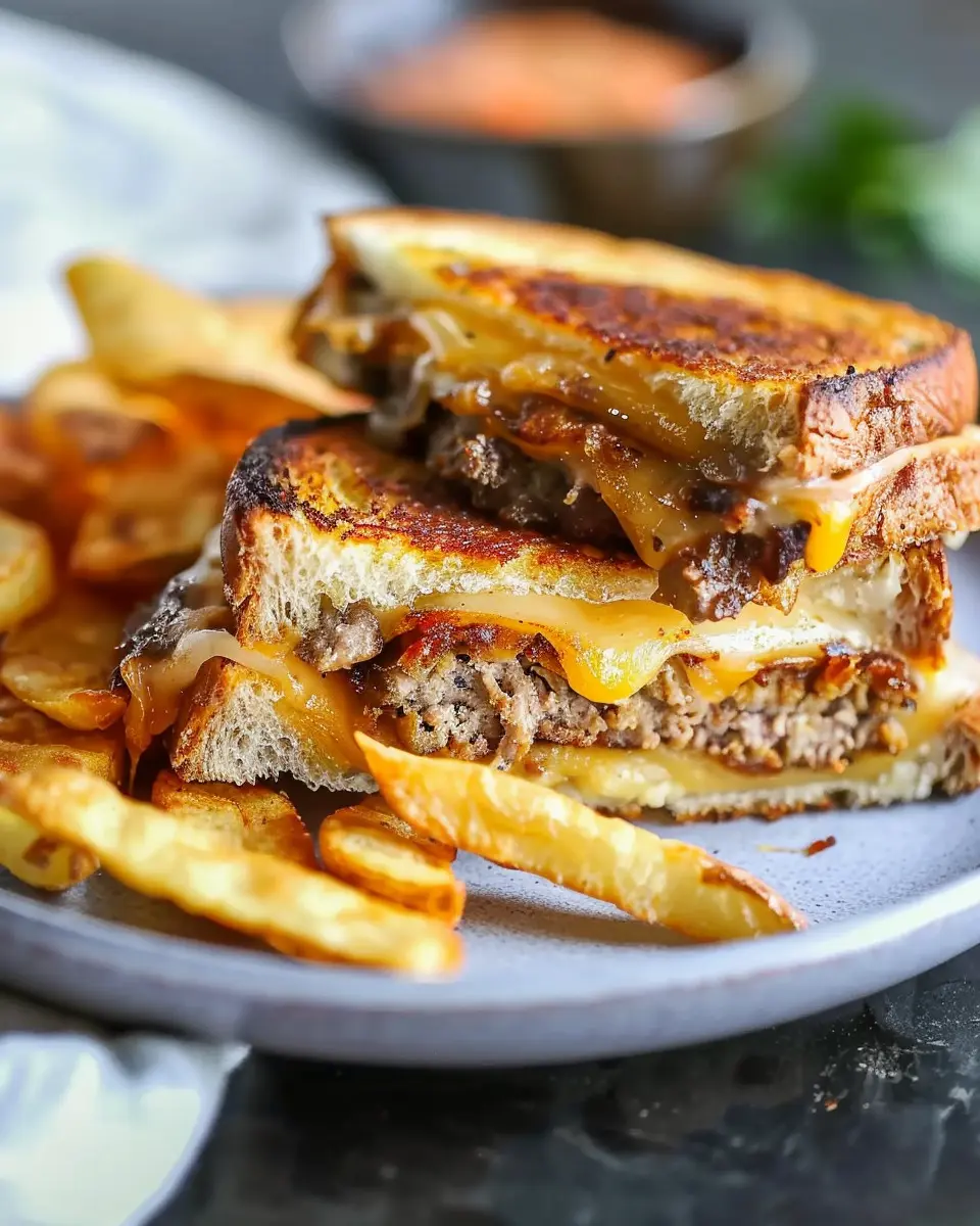 A patty melt is the perfect union of a classic burger and a grilled cheese sandwich, and it’s been a comfort food favorite across America for generations. Imagine a juicy, seasoned beef patty, topped with gooey melted cheese, and cooked between two slices of perfectly toasted bread—often rye or sourdough—with a generous layer of caramelized onions adding that extra depth of flavor. This dish encapsulates the essence of indulgence, balancing both texture and taste in every bite.