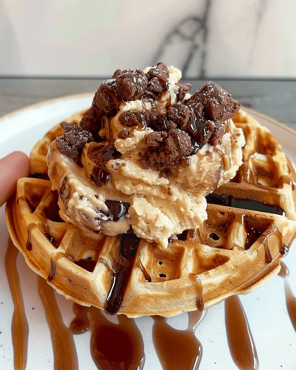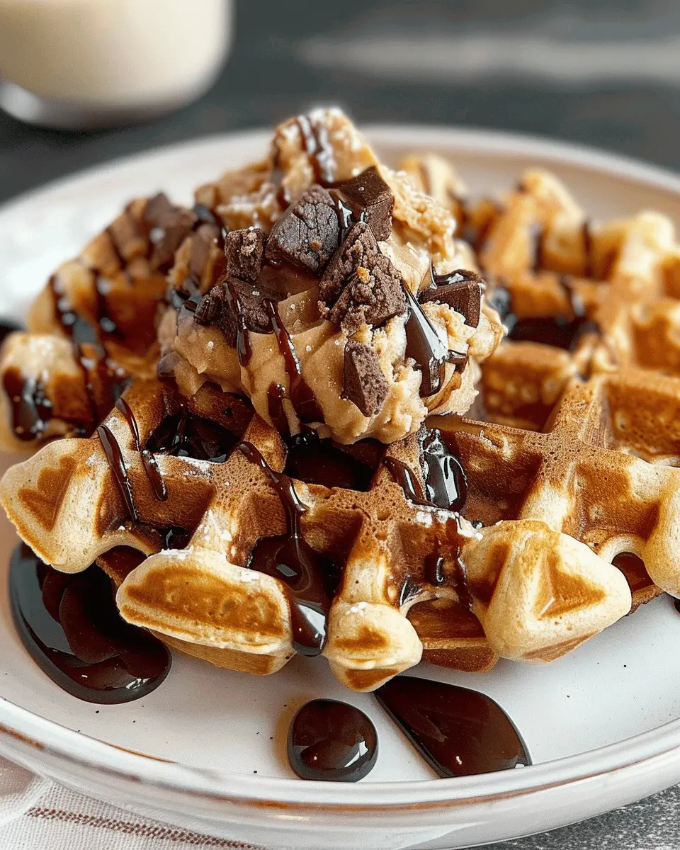 Indulge in the rich and sweet taste of homemade cookie dough waffles with this delightful recipe.