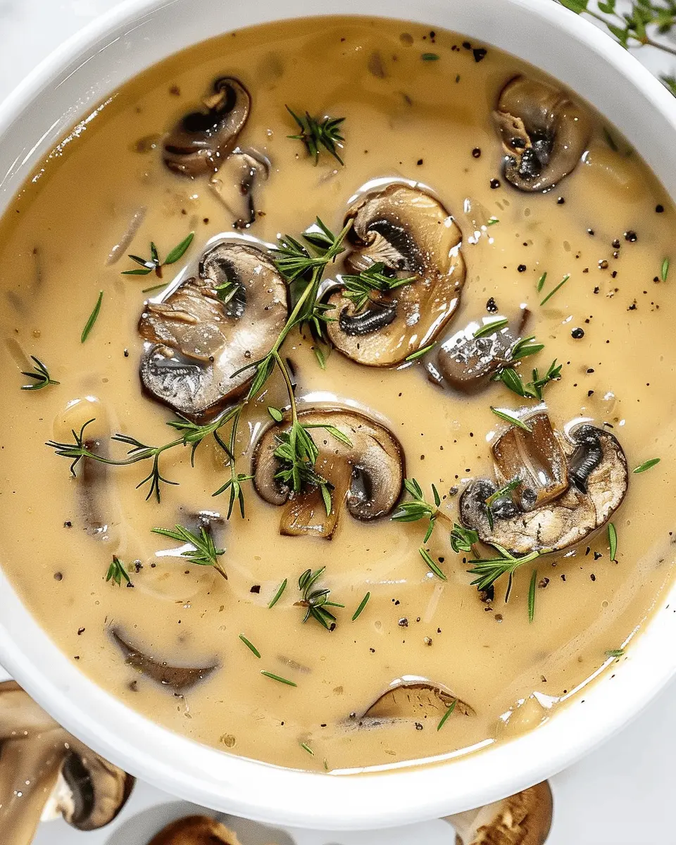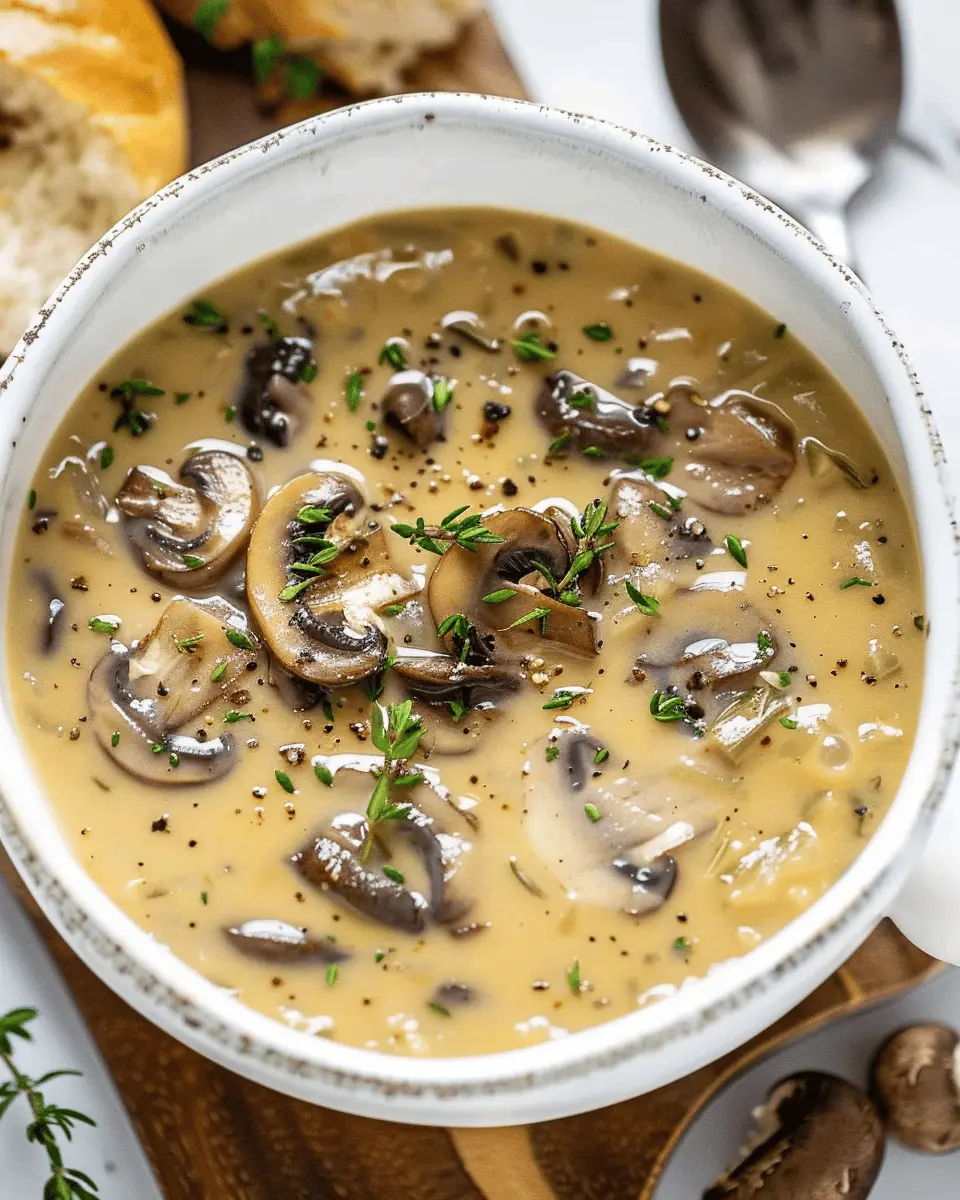 PrintCream of Mushroom Soup: Easy Comfort with Turkey Bacon Delight