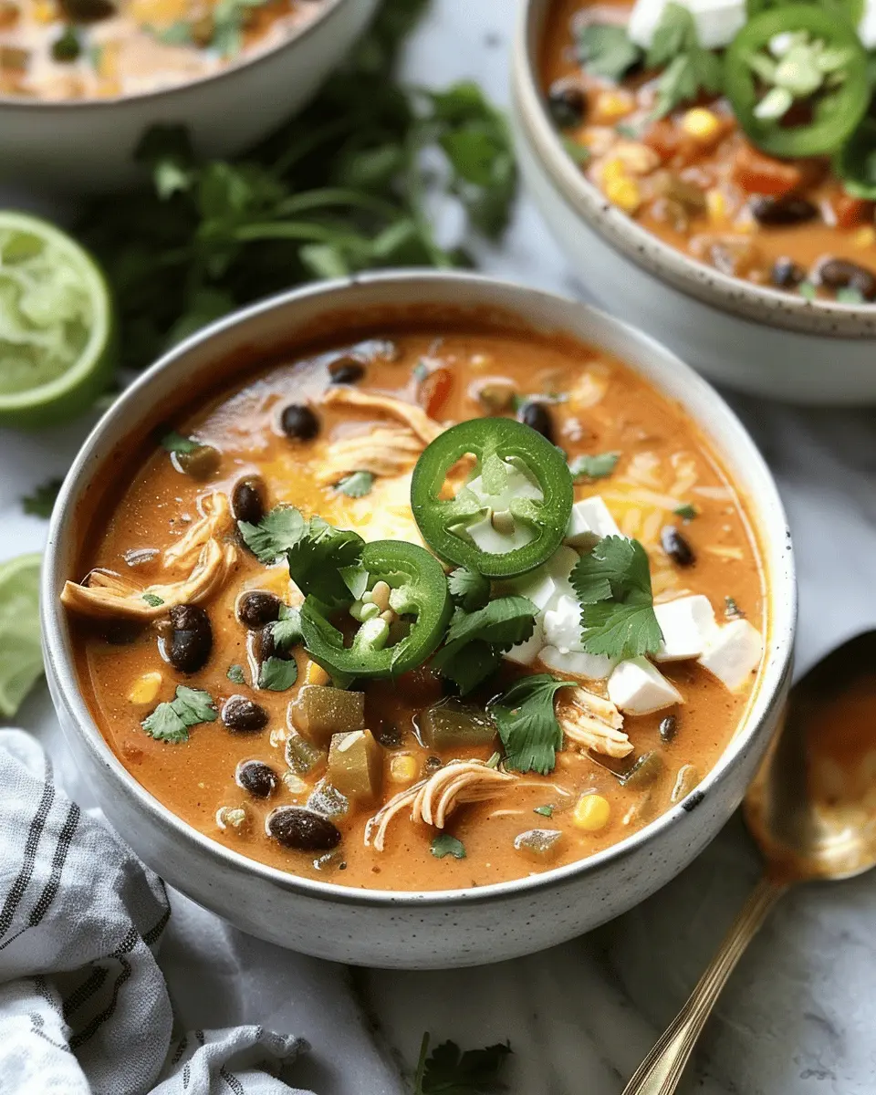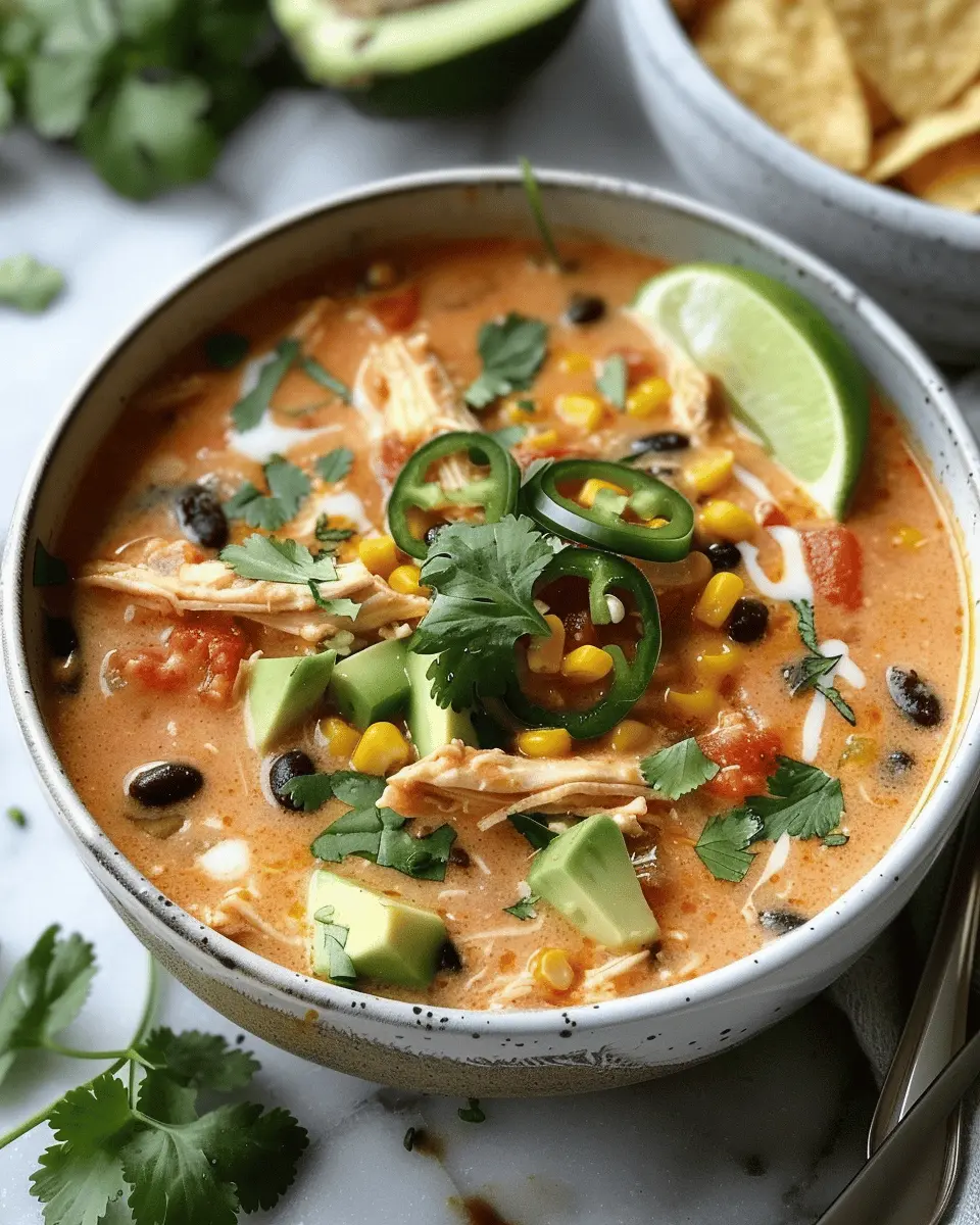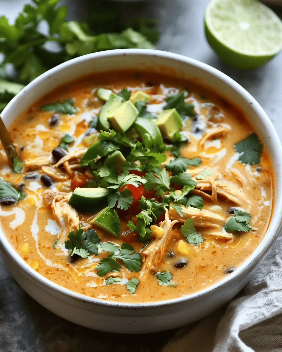 Imagine settling in after a long day, the aroma of spices and savory chicken wafting through your home. This soup isn’t just a meal; it’s an experience. With its rich, creamy base and zesty toppings, it packs a flavor punch that’s both satisfying and refreshing.