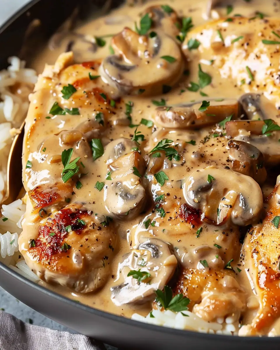 A delightful recipe that combines the rich flavors of creamy mushrooms with tender chicken, perfect for comforting homemade meals.