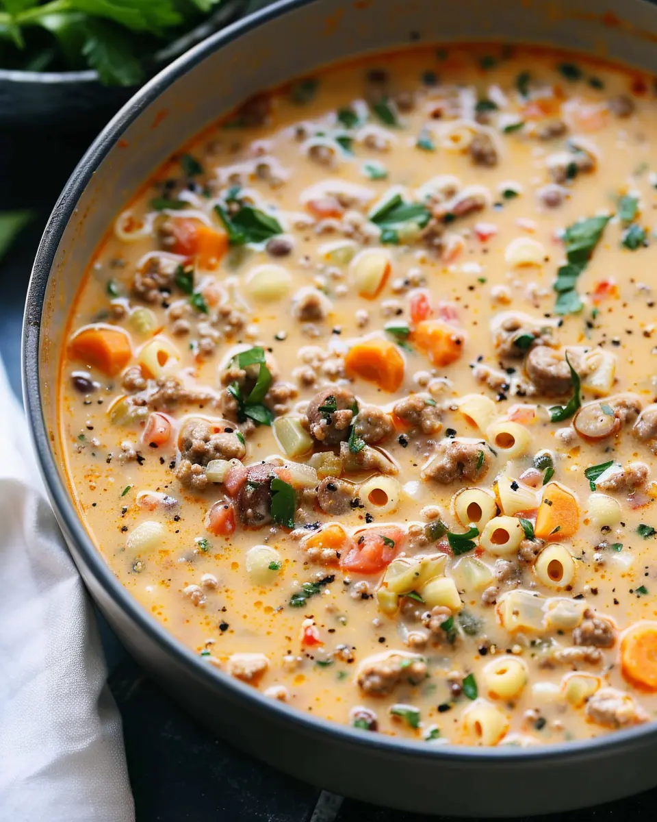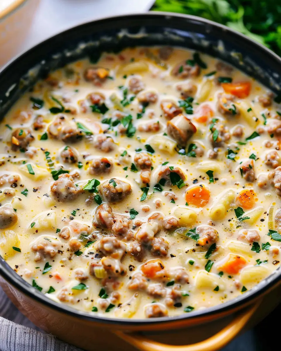 A comforting and creamy soup with Italian sausage and ditalini pasta, perfect for chilly days.