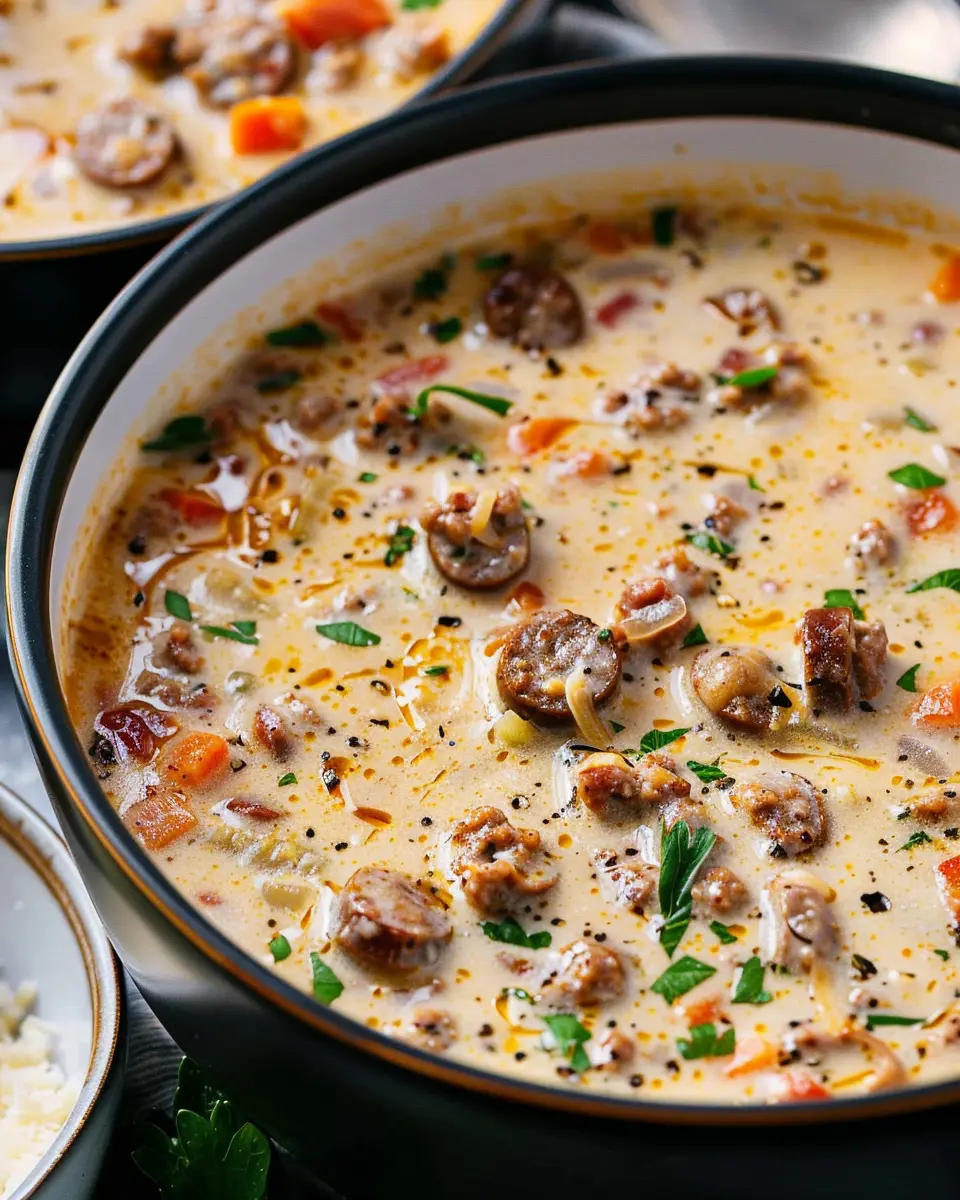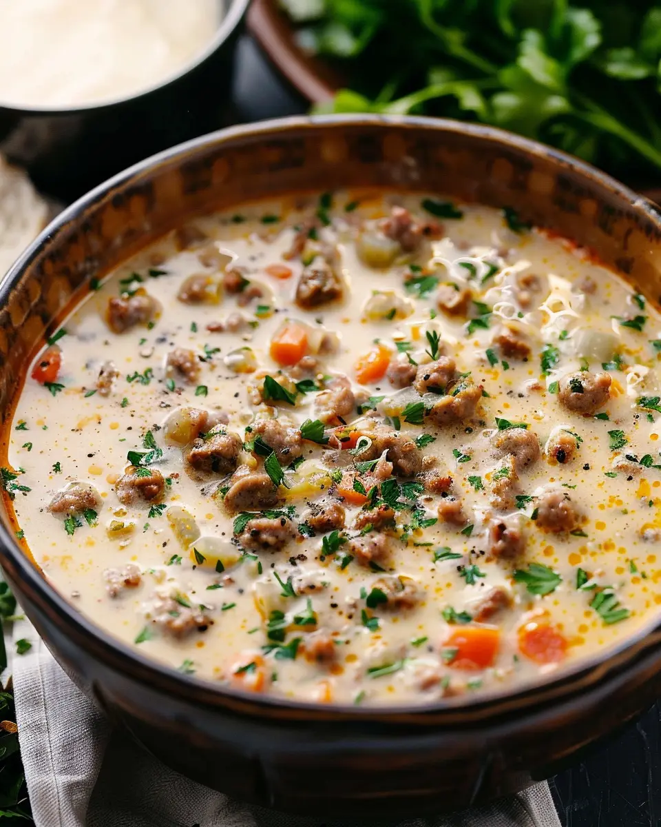 A creamy and savory soup featuring Italian sausage, perfect for cozy nights.