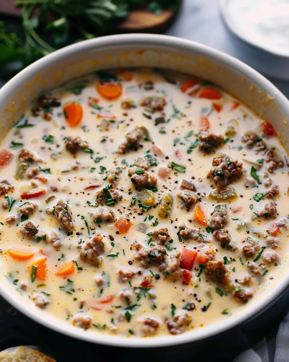 A delicious and comforting creamy soup made with Italian sausage and Parmesan cheese.