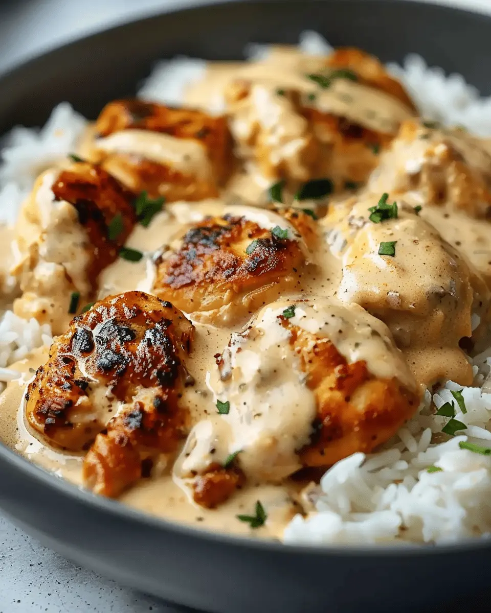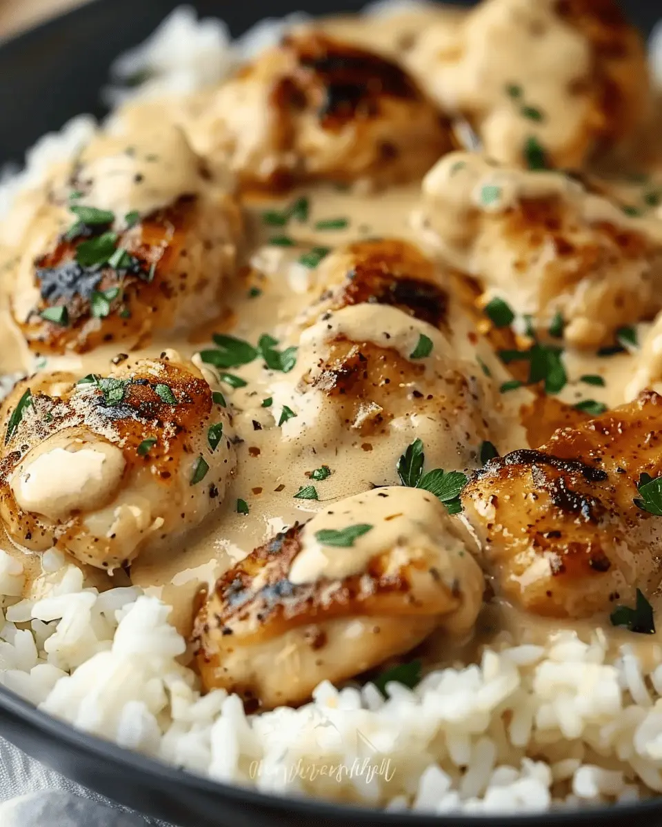 PrintCreamy Smothered Chicken and Rice: A Comforting Indulgence