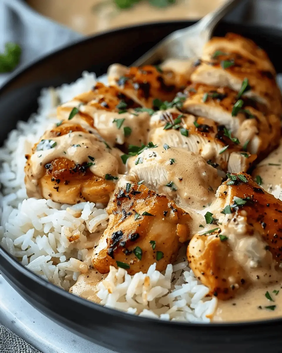 The sauce is the showstopper in this recipe—it’s what makes Creamy Smothered Chicken and Rice truly creamy and indulgent.