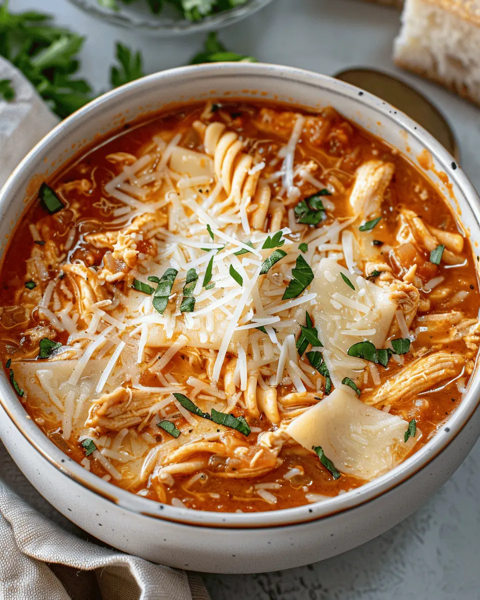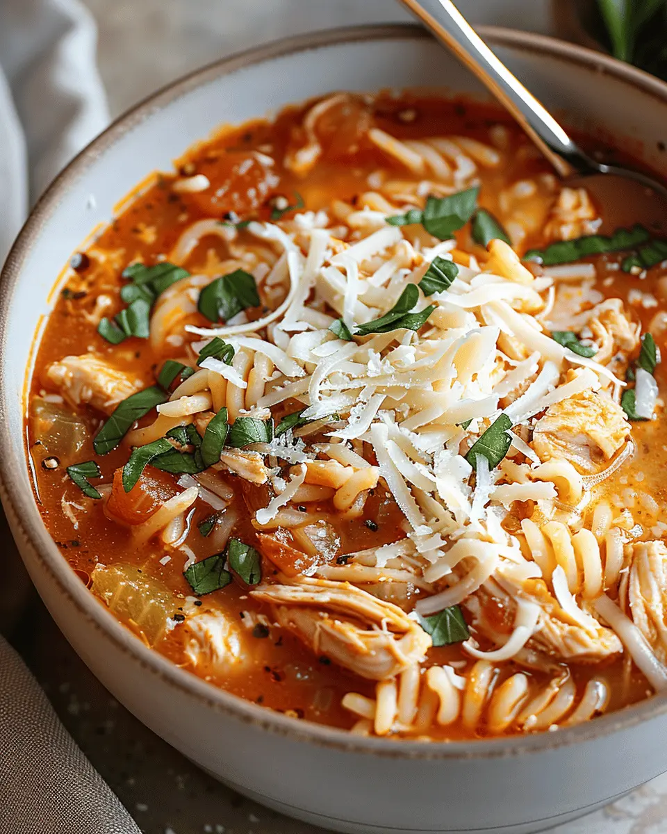 Absolutely! One of the great things about Crockpot Chicken Parmesan Soup is that it freezes remarkably well. To maintain the best flavor and texture, make sure to cool the soup completely before transferring it into airtight containers. You can keep it in the freezer for about 2-3 months. When you’re ready to enjoy it again, just thaw in the fridge overnight and reheat on the stove or in the microwave. Just remember, the pasta may absorb some liquid as it sits, so you might want to add a splash of broth to bring it back to life!