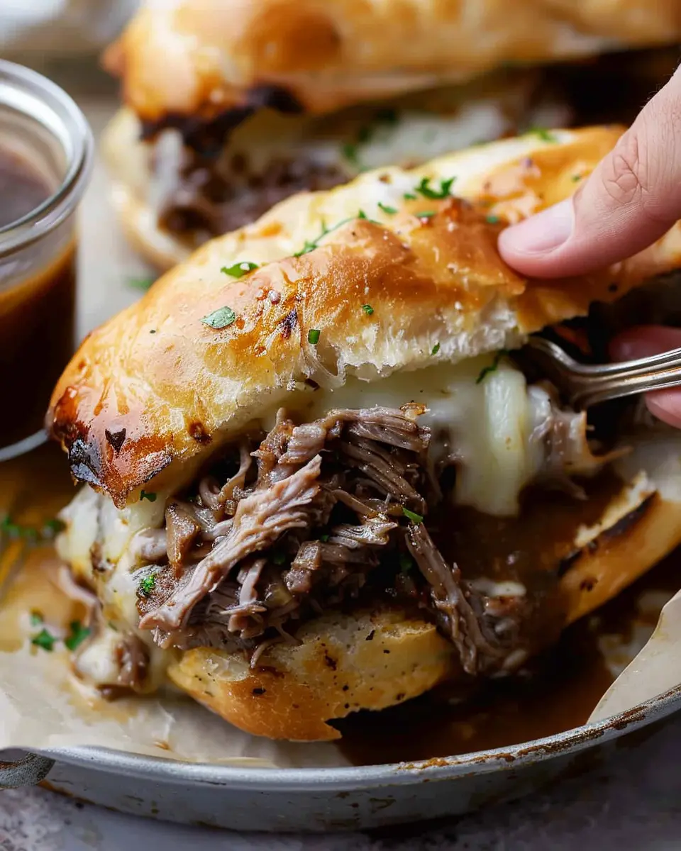 Cover your slow cooker and set it on low for about 8-10 hours or high for 4-6 hours. Low and slow is the way to go, as it makes the beef easier to shred and enhances the overall flavor. When the cooking time is up, remove the beef and let it rest for a few minutes. Use two forks to shred the meat, which should fall apart beautifully. Don’t forget to reserve that rich broth—it’ll be your dipping sauce!