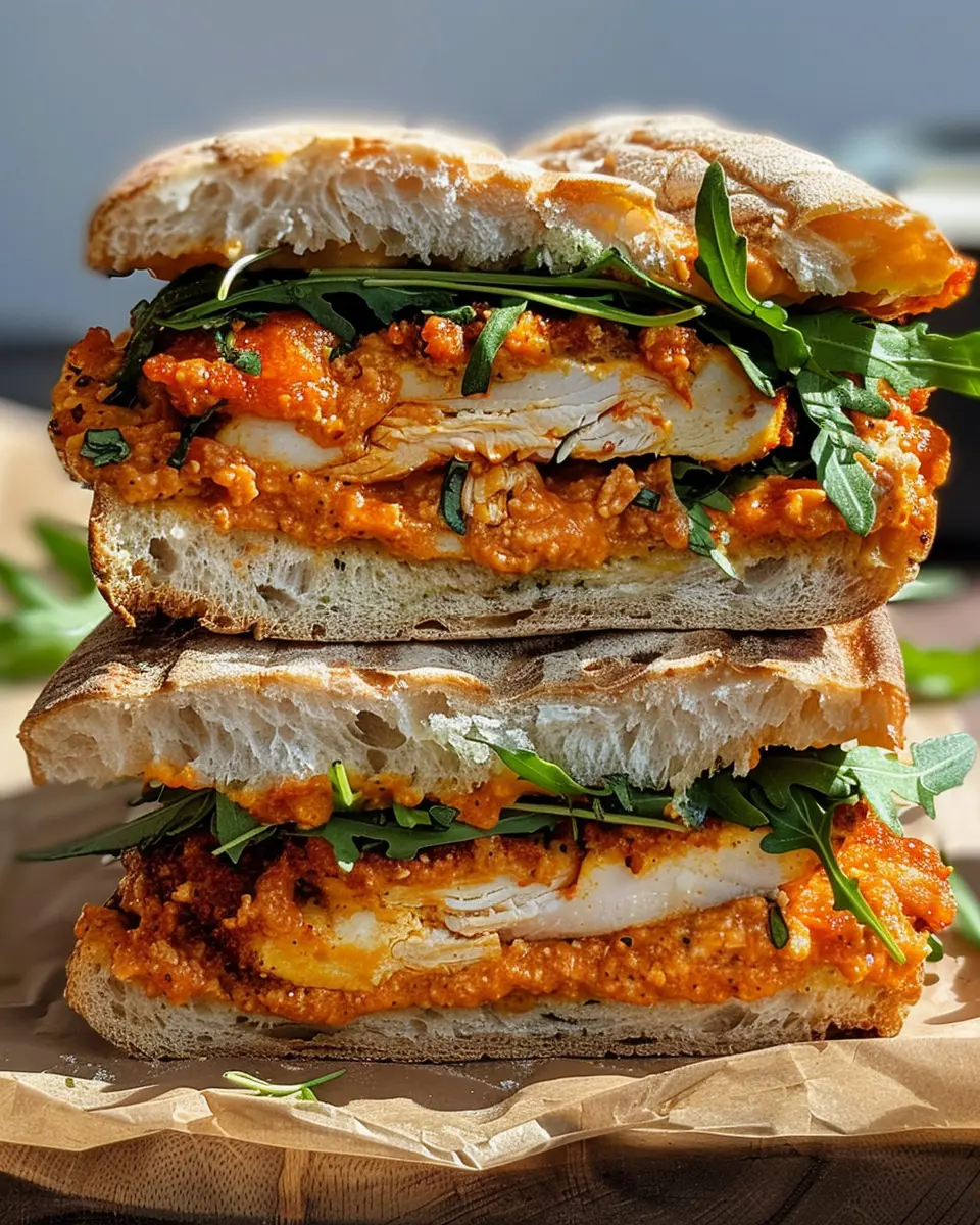 And there you have it! Your Crunchy Chicken Romesco Sandwich is ready to be devoured. This perfect balance of textures and flavors is sure to impress whether you’re hosting friends or just treating yourself. Enjoy every scrumptious bite!