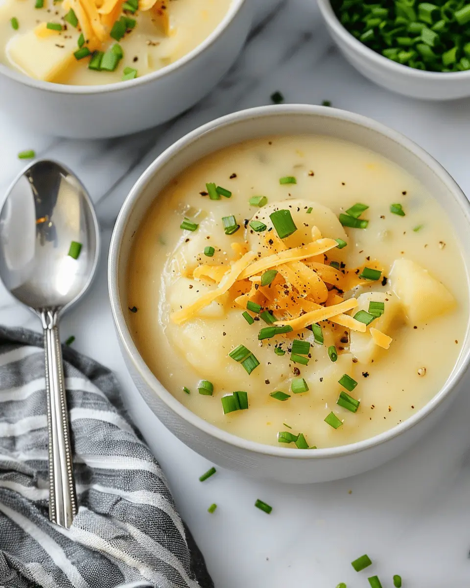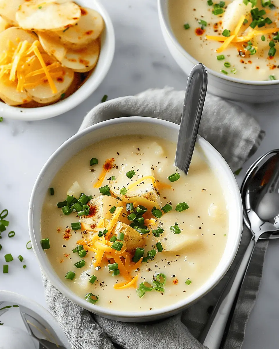 Whether you’re serving it up for a cozy night in or impressing a few friends, this easy 4-ingredient potato soup will undoubtedly become a beloved recipe in your cooking repertoire. Get ready to savor every spoonful!