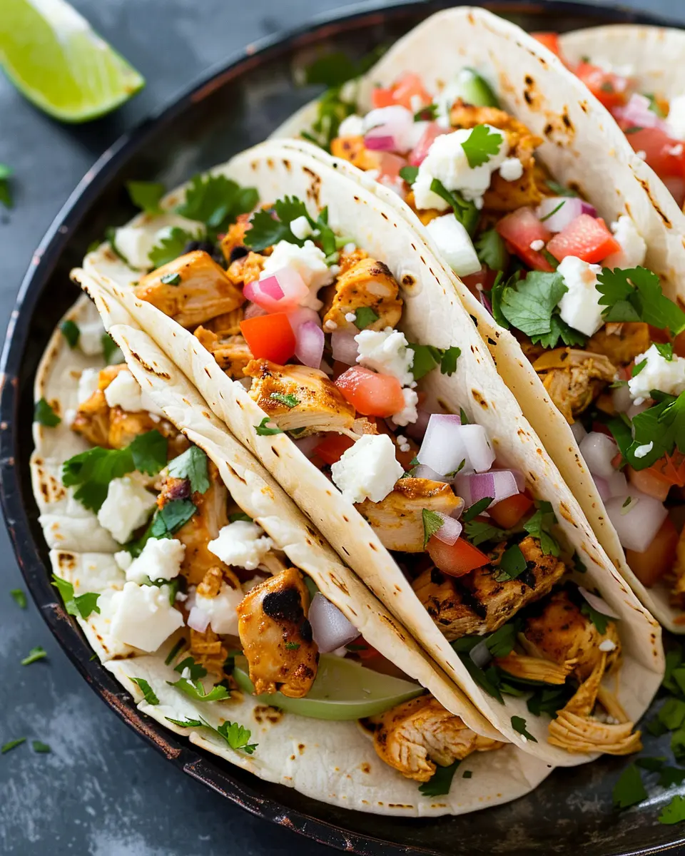 Finally, it’s time to put your tacos together! Start with a warm tortilla and layer on your perfectly cooked chicken. Top it with the fresh pico de gallo, and add any additional toppings you desire—like creamy avocado or zesty sour cream. Each bite should be a burst of flavor, melding together the spices of the chicken and the freshness of the toppings.