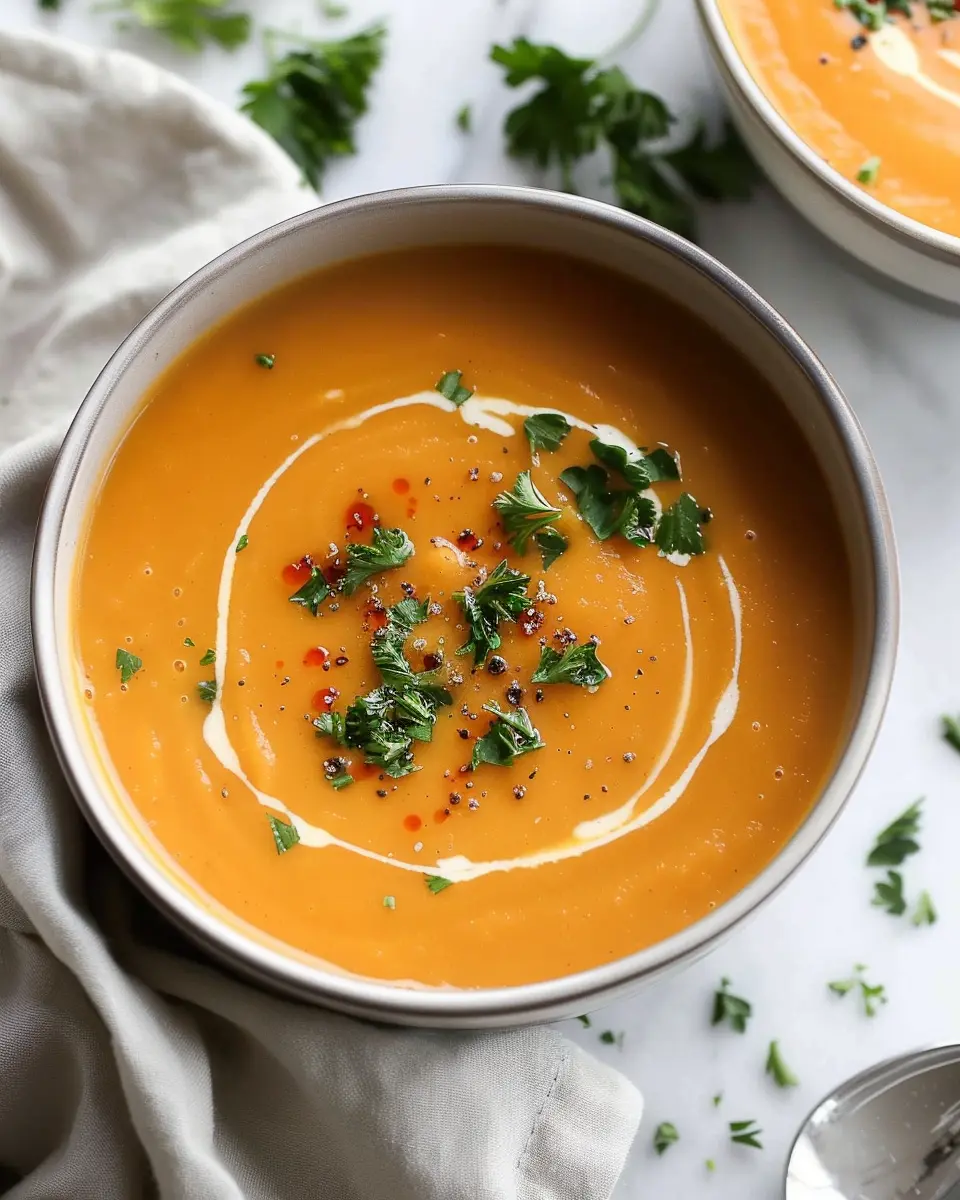 Once your soup has cooked, it’s time to create that silky-smooth texture we all crave. You can use an immersion blender for a seamless feel. Just blend until it reaches your desired consistency. If you want a creamier texture, consider stirring in a splash of coconut milk or heavy cream at this stage.