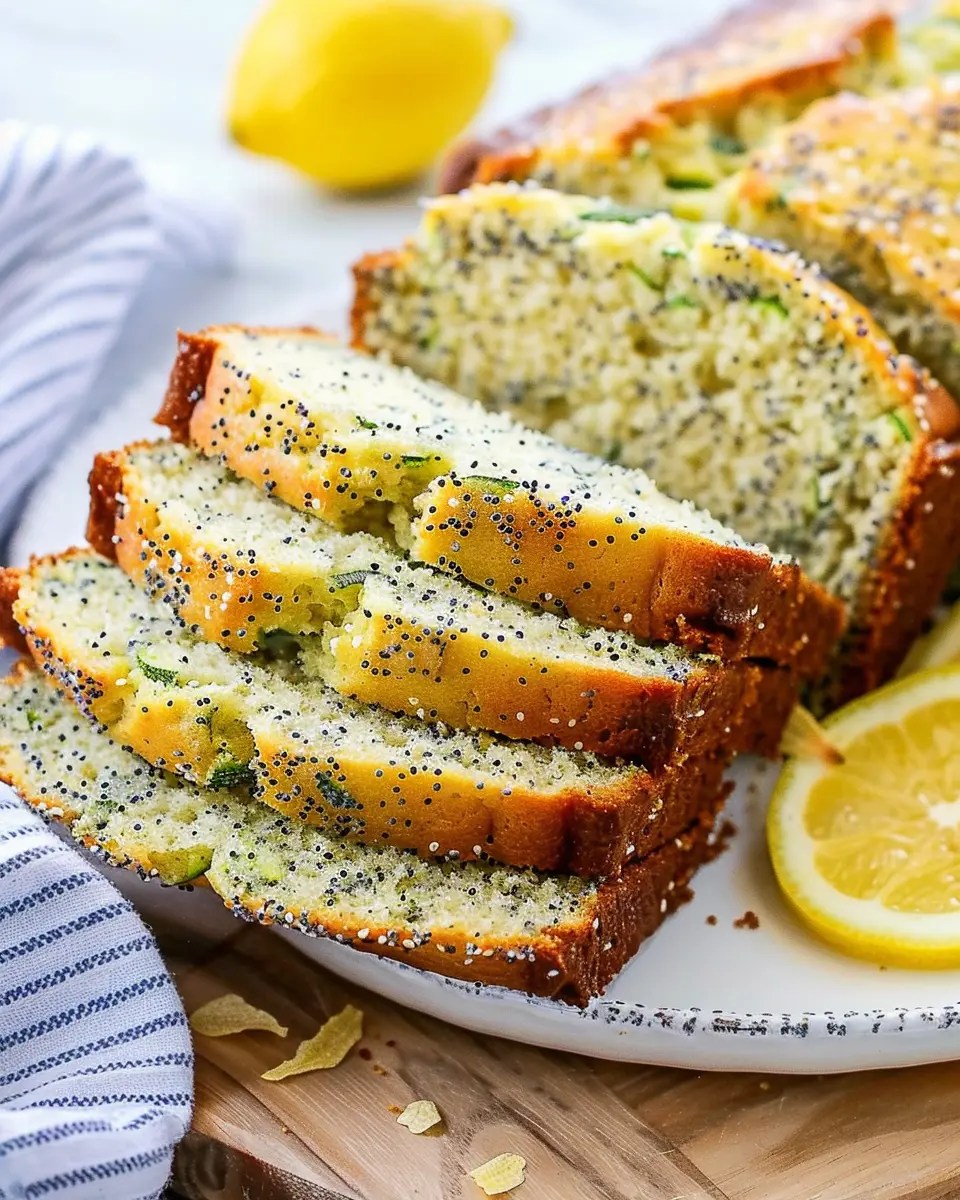 A deliciously moist zucchini bread infused with lemon and poppy seeds, perfect for breakfast or a snack.