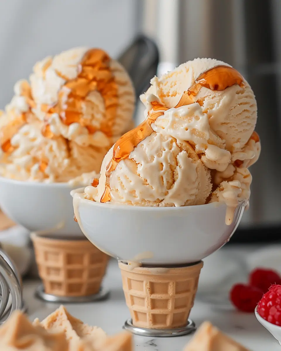 Caramel Sauce: Drizzling warm caramel over your ice cream brings a luscious contrast with its sweet, buttery notes.