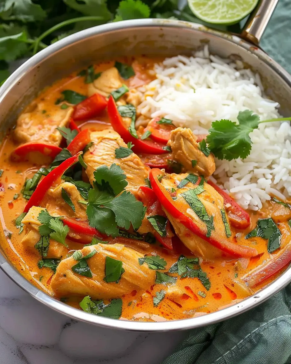 A delicious and quick recipe for Thai Red Curry Chicken that is perfect for weeknight dinners.