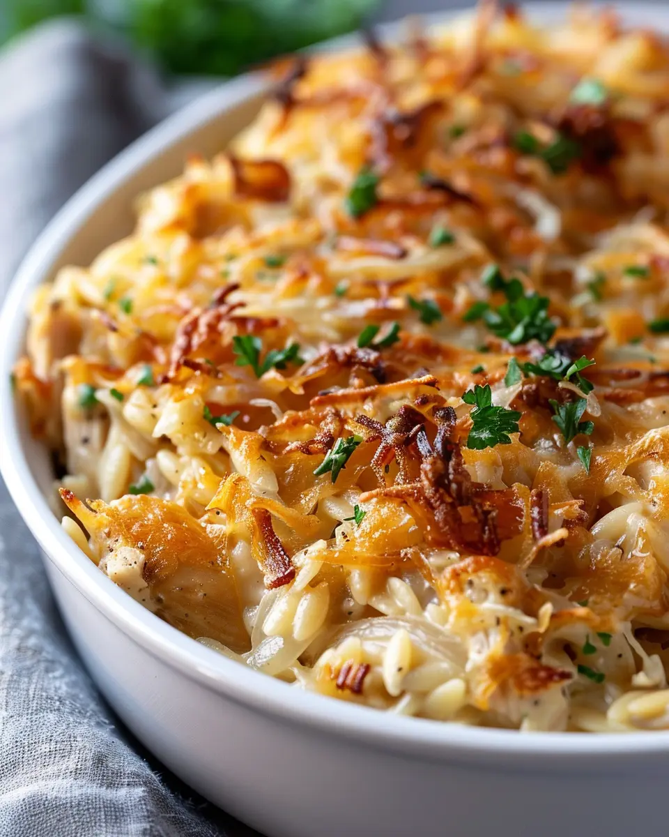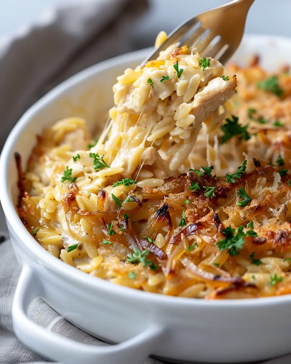And there you have it! A French Onion Chicken Orzo Casserole that is hearty, delicious, and sure to impress. Whether it’s a cozy dinner for two or a gathering with friends, this dish is sure to become a favorite in your household. Enjoy every hearty bite!