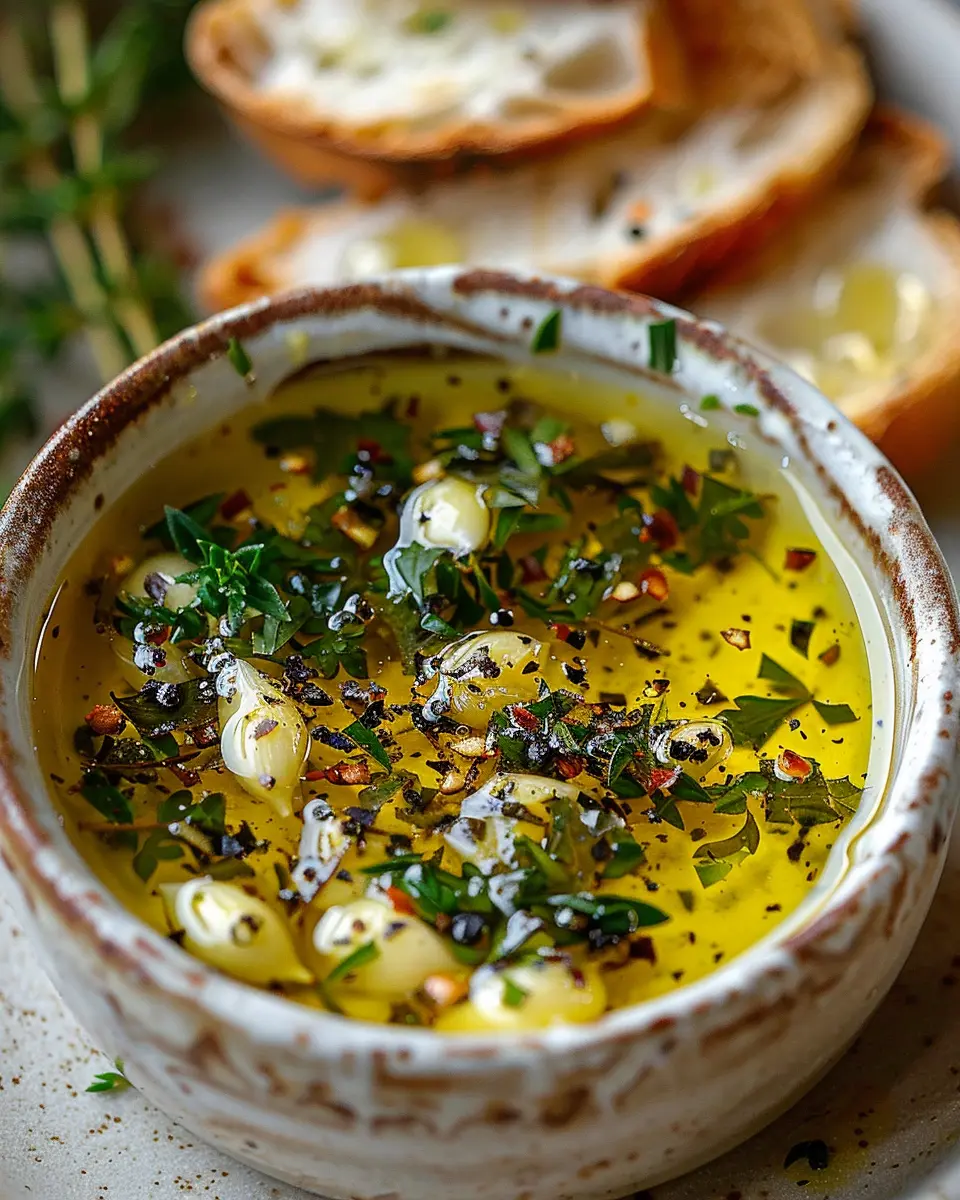 To make your experience even more enjoyable, you can personalize this dip by adding herbs or spices. Fresh herbs like parsley or thyme can take your garlic and olive oil dip to the next level. Plus, you might want to try pairing it with simple sides like sliced bell peppers or cucumber sticks for a delightful crunch.