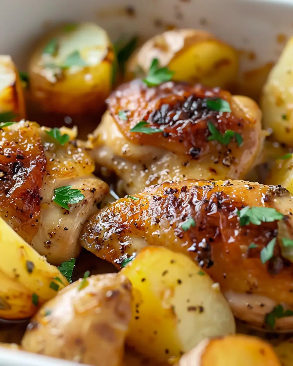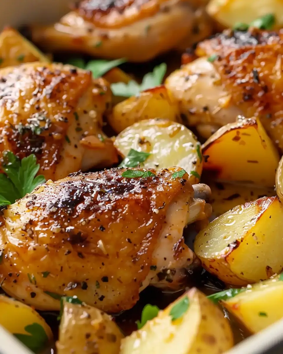 Enjoy this delicious Garlic Butter Chicken and Potatoes recipe, perfect for a comforting family meal.