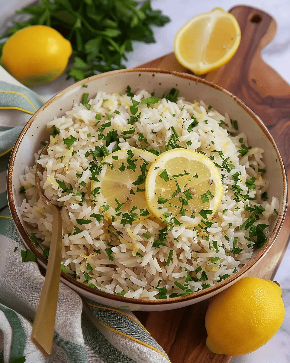 For a nutty crunch and herbaceous twist, consider mixing your lemon rice with a medley of fresh herbs like parsley, dill, or basil. Toast a handful of almonds or walnuts until golden, and toss them in for added texture.