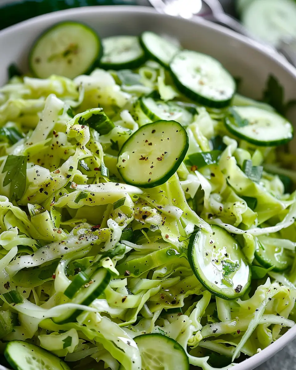 PrintGreen Cabbage Cucumber Salad: A Refreshing Side with Turkey Bacon