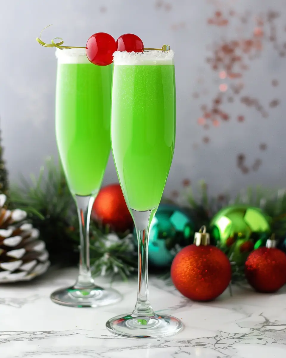 Fruity Grinch Mimosas with Unique Flavor Twists