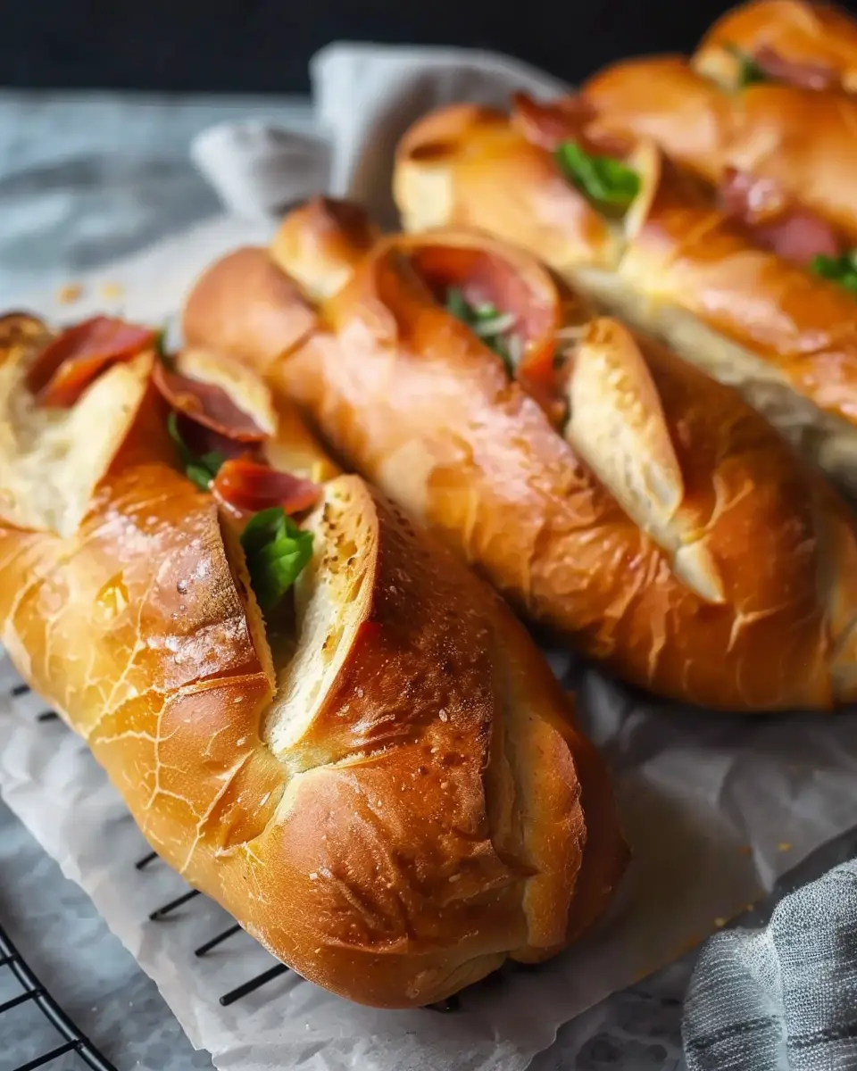 Enjoy the ultimate comfort food with these handmade sub rolls, perfect for sandwiches filled with turkey bacon and chicken ham.