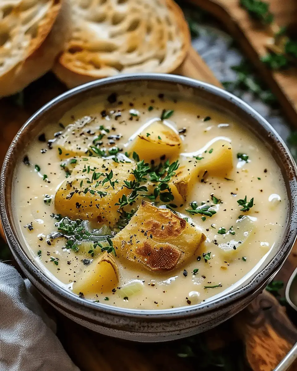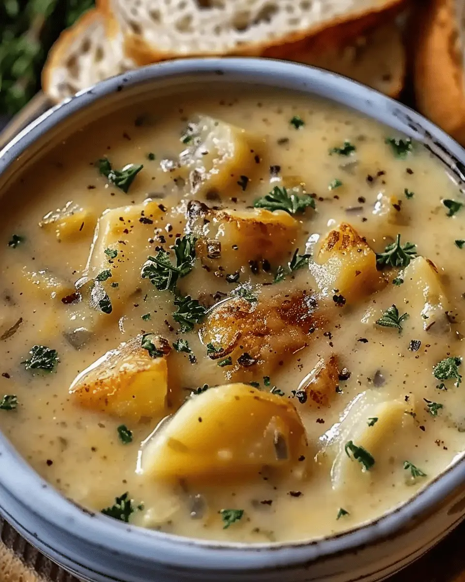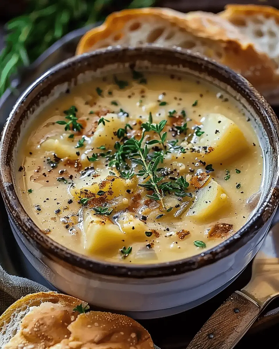 PrintHearty Cheddar Garlic Herb Potato Soup Recipe for Cozy Nights