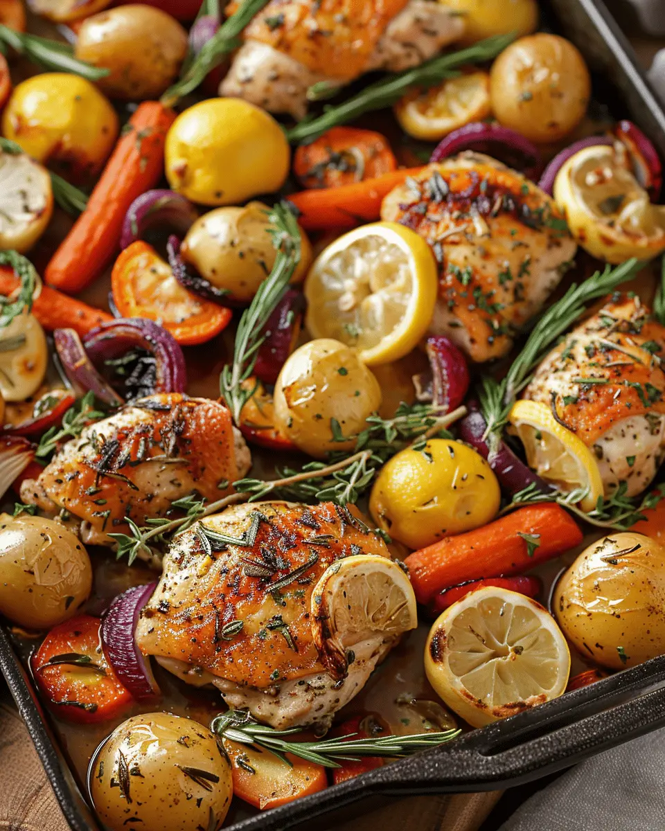 Keywords: Lemon-Garlic Chicken, One-Pan Chicken, Easy Dinner, Veggie Bake, Herb-Infused Meal