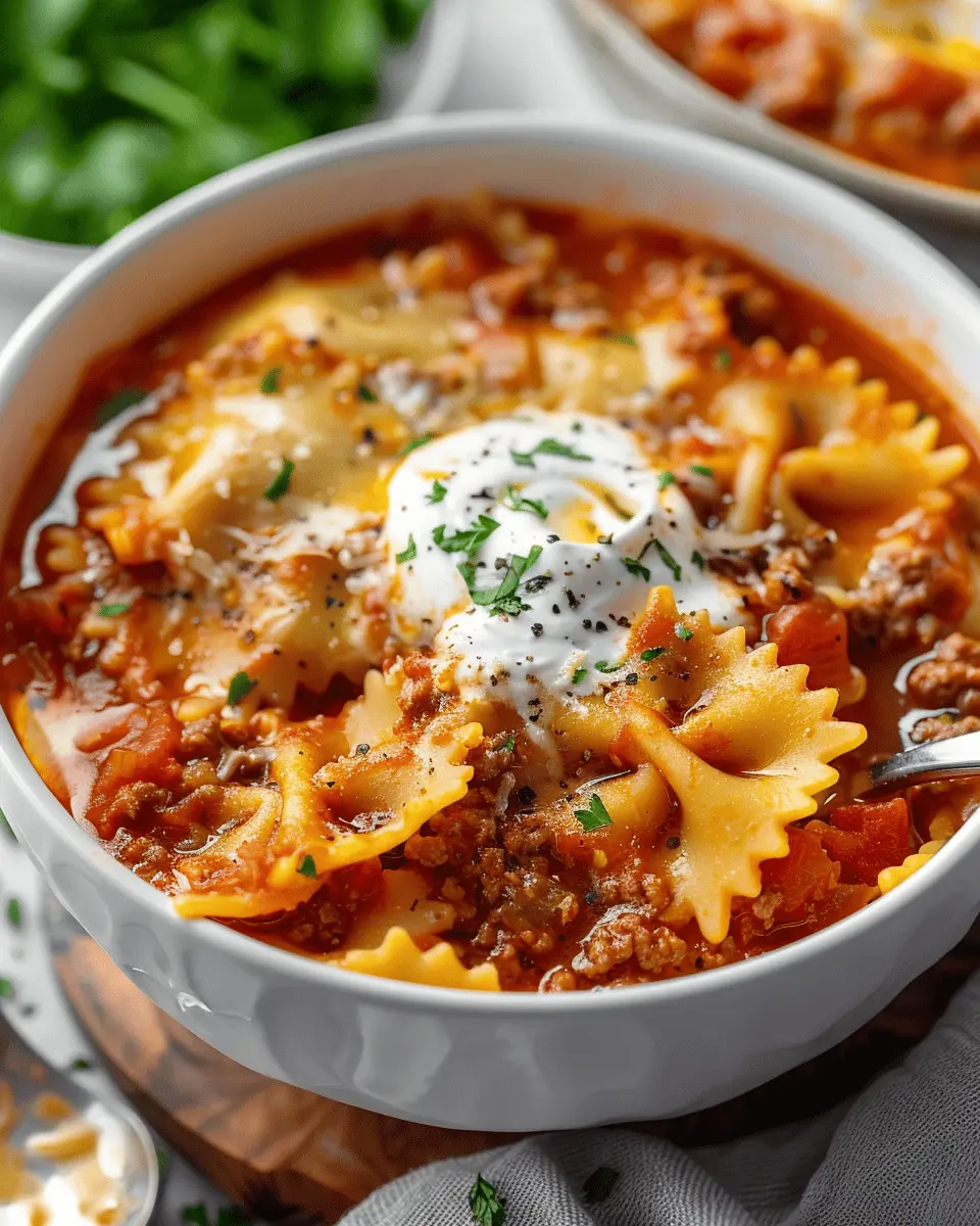 Creating the perfect homemade lasagna soup starts with choosing the right ingredients. Opt for high-quality beef and fresh vegetables to enhance the flavor. For the best texture, cook your bow tie pasta separately, then add it just before serving to prevent it from becoming mushy. Don’t skip seasoning; a pinch of Italian herbs can elevate your dish!