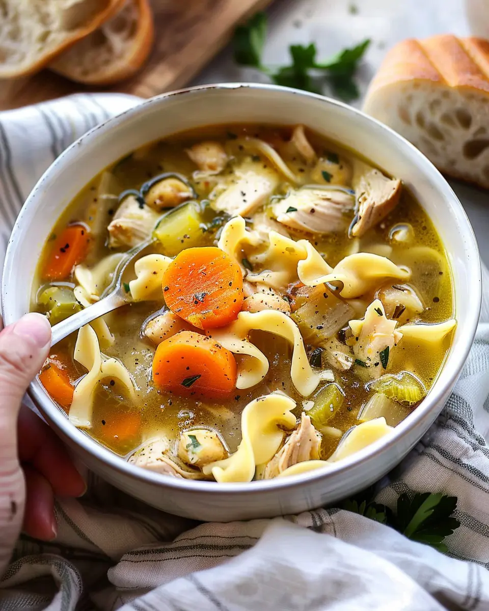 Feel free to customize your homestyle chicken noodle soup! If you’re out of turkey bacon, lean turkey can work well too. For a vegetarian version, just switch to vegetable broth and add more veggies. No egg noodles? Try whole grain or gluten-free options. The beauty of soup is its flexibility—play around with what you have on hand!