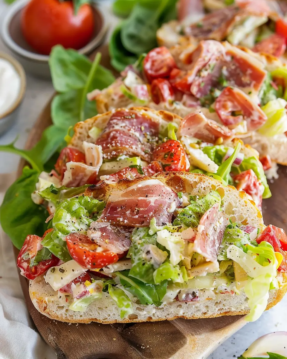Discover the delicious twist of the Italian Grinder Salad Sandwich with turkey bacon, combining fresh ingredients and bold flavors.