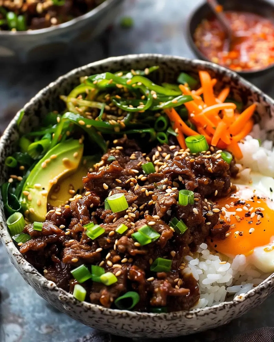 Lastly, what makes this dish so appealing is its adaptability. Feel free to customize your bowls with an assortment of toppings like sliced cucumbers, carrots, or even a fried egg on top! The possibilities are endless, and that’s part of the fun when you dive into making Korean beef bulgogi rice bowls. If you’re intrigued by vibrant flavors and want to explore the joys of Korean cooking, then you’re definitely in for a treat!