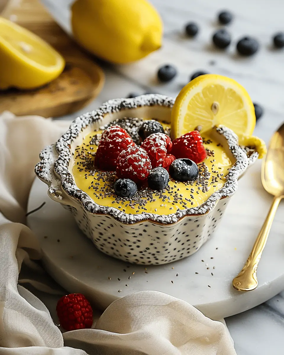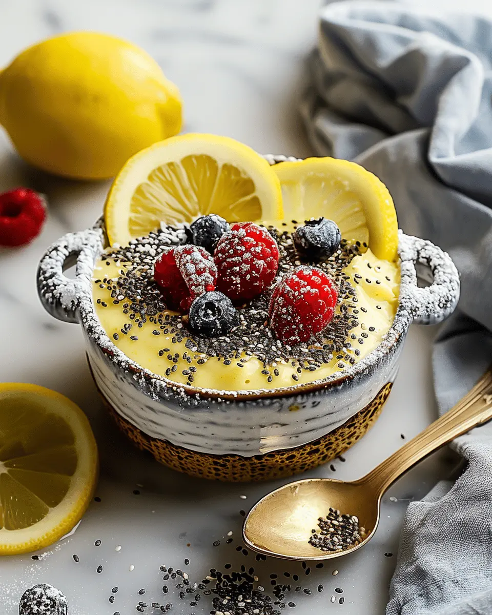 A refreshing and easy dessert that combines the tangy flavor of lemon with the creamy texture of chia pudding.