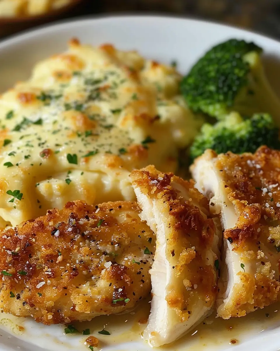 Garlic Mashed Potatoes: Creamy and buttery, these mashed potatoes with a hint of garlic pair perfectly with the crispy parmesan chicken.