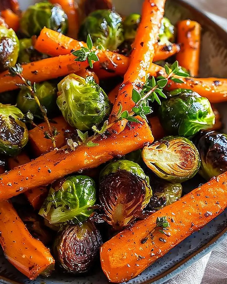 Maple Glazed Carrots and Roasted Brussel Sprouts Recipe
