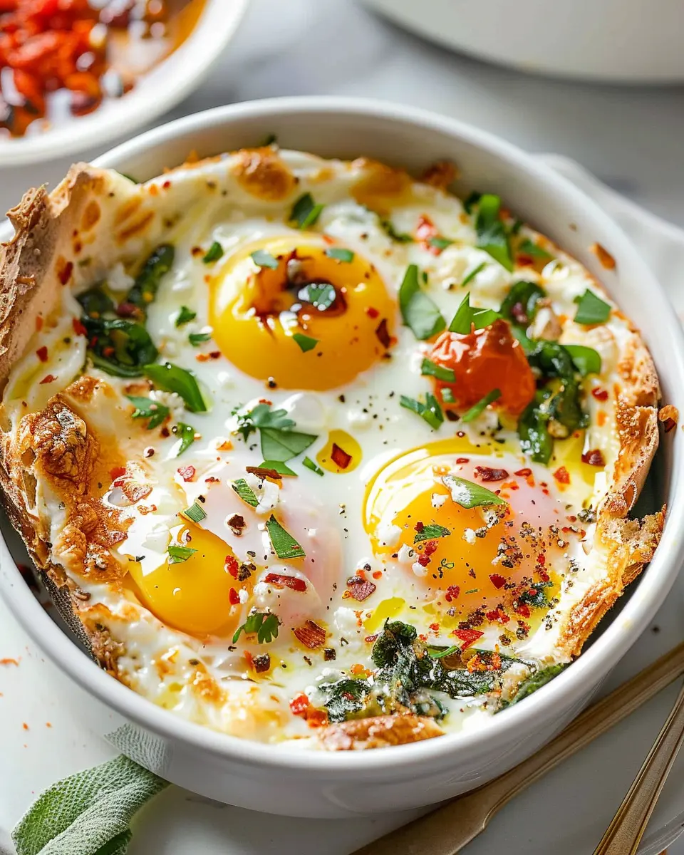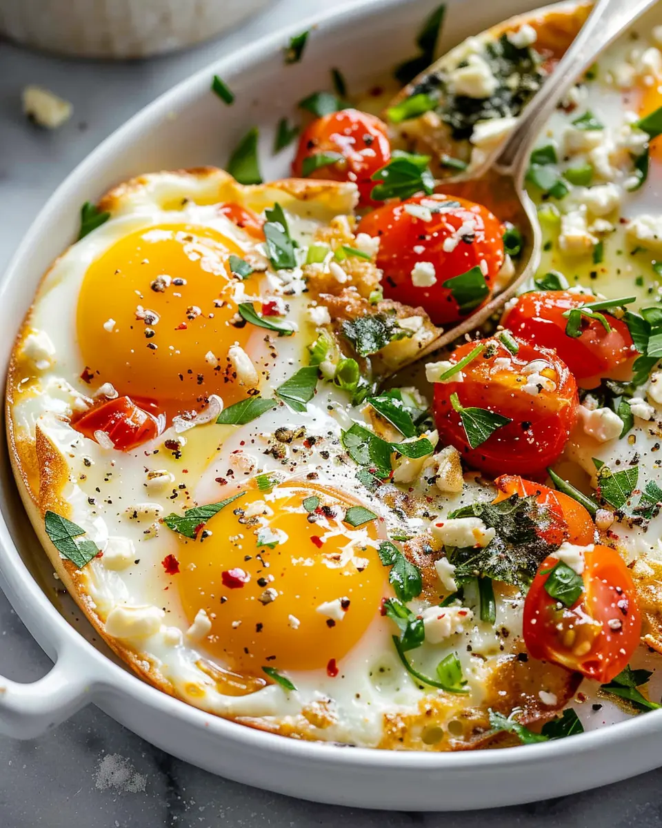 And there you have it! Once your Mediterranean Baked Feta Eggs are done, serve them directly from the dish for a warm, rustic feel. Pair with crusty bread for a satisfying brunch or even a light dinner.