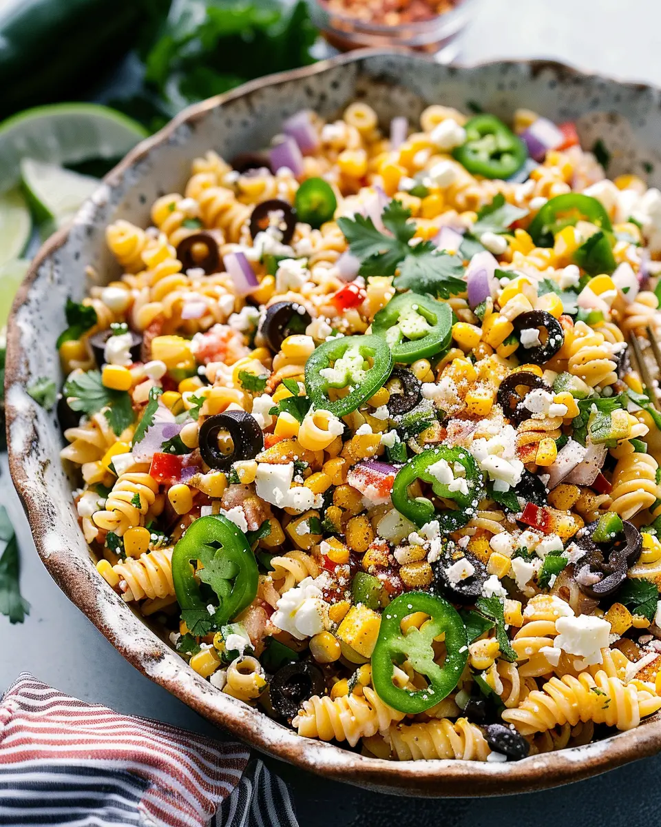 If you’re someone who can’t resist a bit of heat, consider adding extra jalapeños to your Mexican Street Corn Pasta Salad. Not only do these little green gems pack a punch, but they also bring a fresh crunch to the dish. Try roasting them first for a smoky flavor, or keep them raw for a crisp, zesty surprise! To balance the heat, you might want to add a dollop of sour cream or a sprinkle of feta cheese, which will cool things down beautifully.